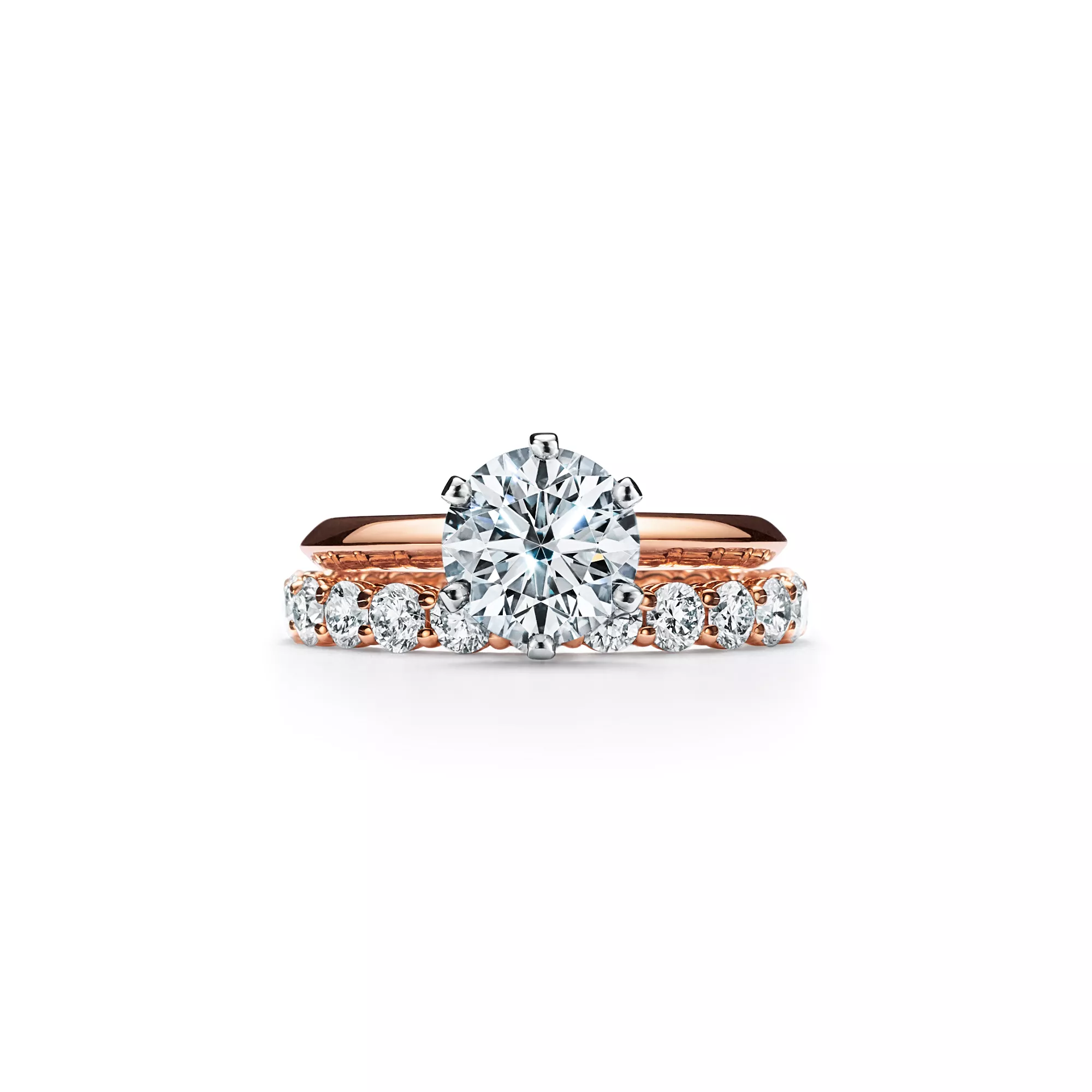 Der Tiffany® Setting ist ein wahres Design-Meisterstück und wohl der berühmteste Verlobungsring auf der Welt. Die makellose Verarbeitung lässt die 6-fache Krappenfassung fast verschwinden. Auf diese Weise schwebt der funkelnde Diamant über dem Ring aus strahlendem 18-karätigem Roségold und erhebt sich wunderbar ins Licht. Das Resultat ist ein Ring von solcher Schönheit, dass er seit über 130 Jahren ein Symbol für die größten Liebesgeschichten der Welt ist.
