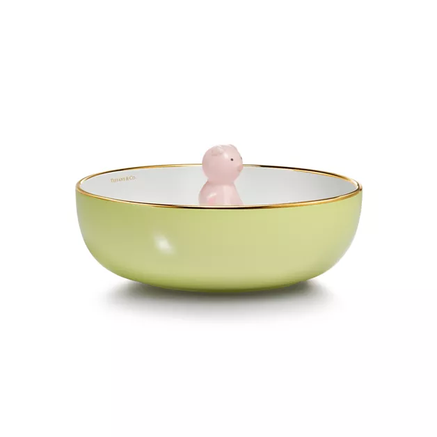 Für wunderschöne Designs ist man niemals zu jung. Unsere Tiny Tiffany Kollektion feiert die Meilensteine der Kleinsten mit Objekten, die eine Hommage an die ikonischen Motive und Schmuckstücke des Hauses darstellen. Diese Suppenschüssel mit unserer Schweinchenfigur Ruby ist von Tiffanys langjähriger Liebe zur Natur inspiriert und wird die Fantasie der Kleinen für viele Jahre auf wunderschöne Weise beflügeln.