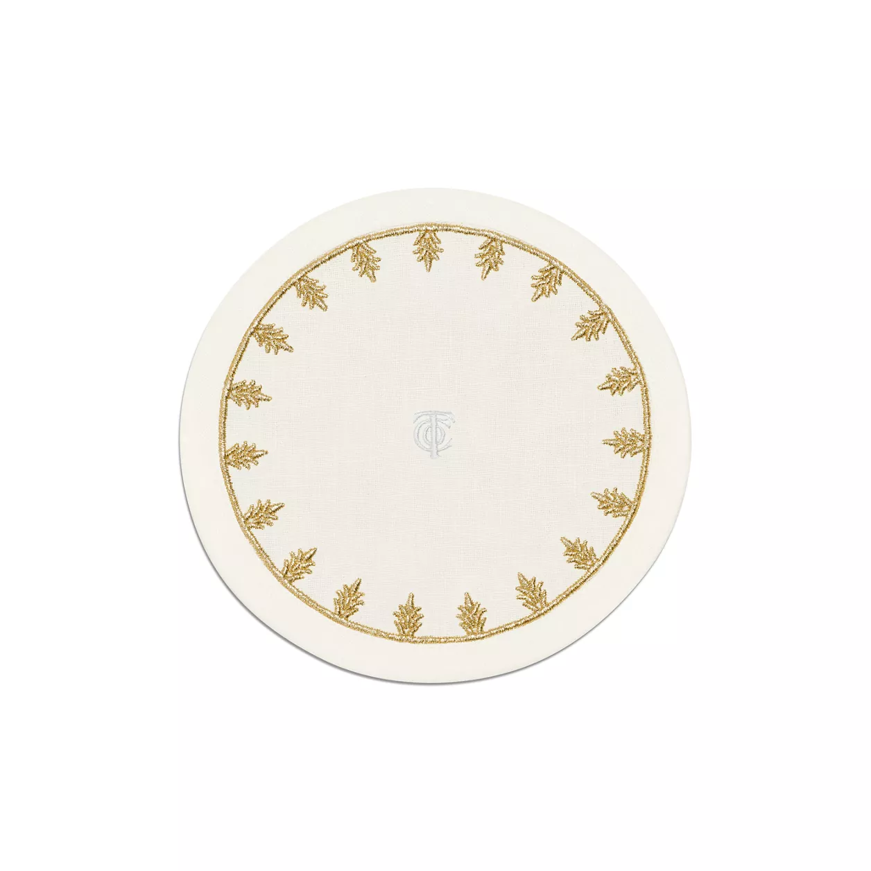 Tiffany Crest:Untersetzer aus besticktem weißem Leinen, 1 Tiffany Crest:Untersetzer aus besticktem weißem Leinen Bildnummer 1 Tiffany Crest:Untersetzer aus besticktem weißem Leinen, 2 Tiffany Crest:Untersetzer aus besticktem weißem Leinen Bildnummer 2