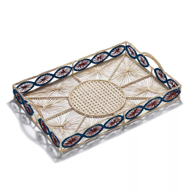 Tiffany Batik ist inspiriert von Archivdesigns von Camille Le Tallec für Tiffany & Co. In den 1970er-Jahren schuf der französische Künstler Essgeschirr für das Haus, das uns auch heute noch inspiriert. Viele der Designs umfassten handbemalte Porzellankreationen mit aufwendigen geometrischen Motiven, die von den als Batik bekannten traditionellen javanischen Textilien inspiriert sind. Wir haben die Stücke von Le Tallec mit handwerklichen Materialien, wie z. B. Raffiabast, neu interpretiert und so eine Reihe von außergewöhnlichen Wohndesigns kreiert.