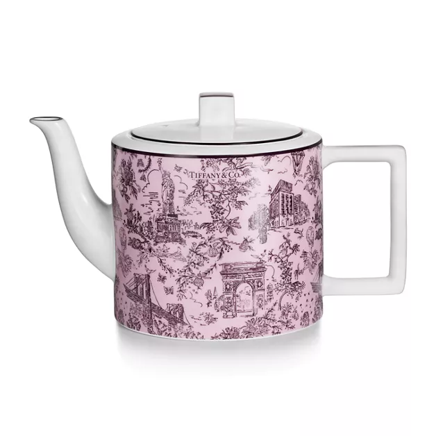 Tiffany Toile Designs sind eine originelle Hommage an Tiffanys Heimatstadt und Tradition. Das verspielte und zugleich elegante Kunstwerk ist von einer Illustration von New York aus dem Tiffany Archiv inspiriert. Die Brooklyn Bridge trifft auf Bird on a Rock, die Freiheitsstatue verschmilzt mit einem Diamanten von Tiffany & Co. Diese morganitfarbene Kaffeekanne besticht mit einem kunstvollen Druck und einem schwarzen, handgemalten Rand. Kombinieren Sie ihn mit Stücken aus der Tiffany Toile Kollektion für einen perfekt abgestimmten Look oder mit unseren anderen Tiffany Home Modellen.