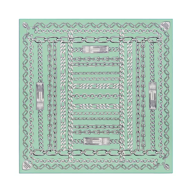 Der Return to Tiffany™ Schal ist von einem der markantesten Designs des Hauses inspiriert. Er ist aus Seide gefertigt und mit Kettenmotiv-Details versehen, die an unsere ikonischen Schmuckstücke erinnern. Kombinieren Sie ihn mit einem Schalring von Tiffany oder verwenden Sie ihn zur kunstvollen Dekoration Ihrer Lieblingshandtasche von Return to Tiffany™.