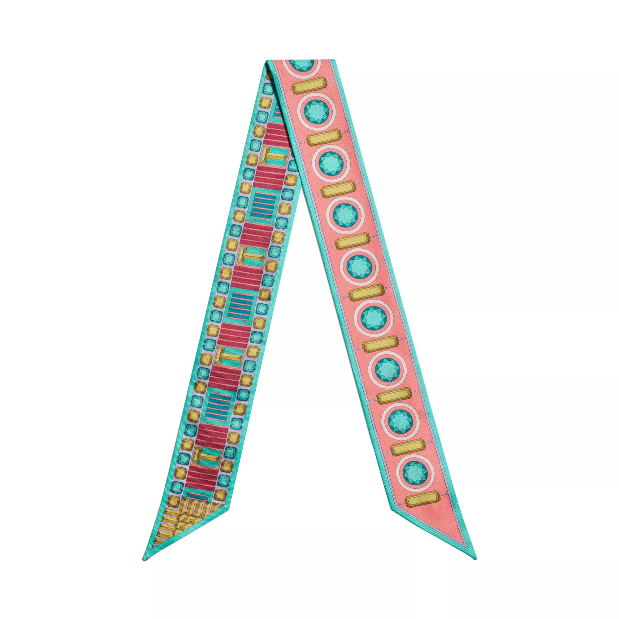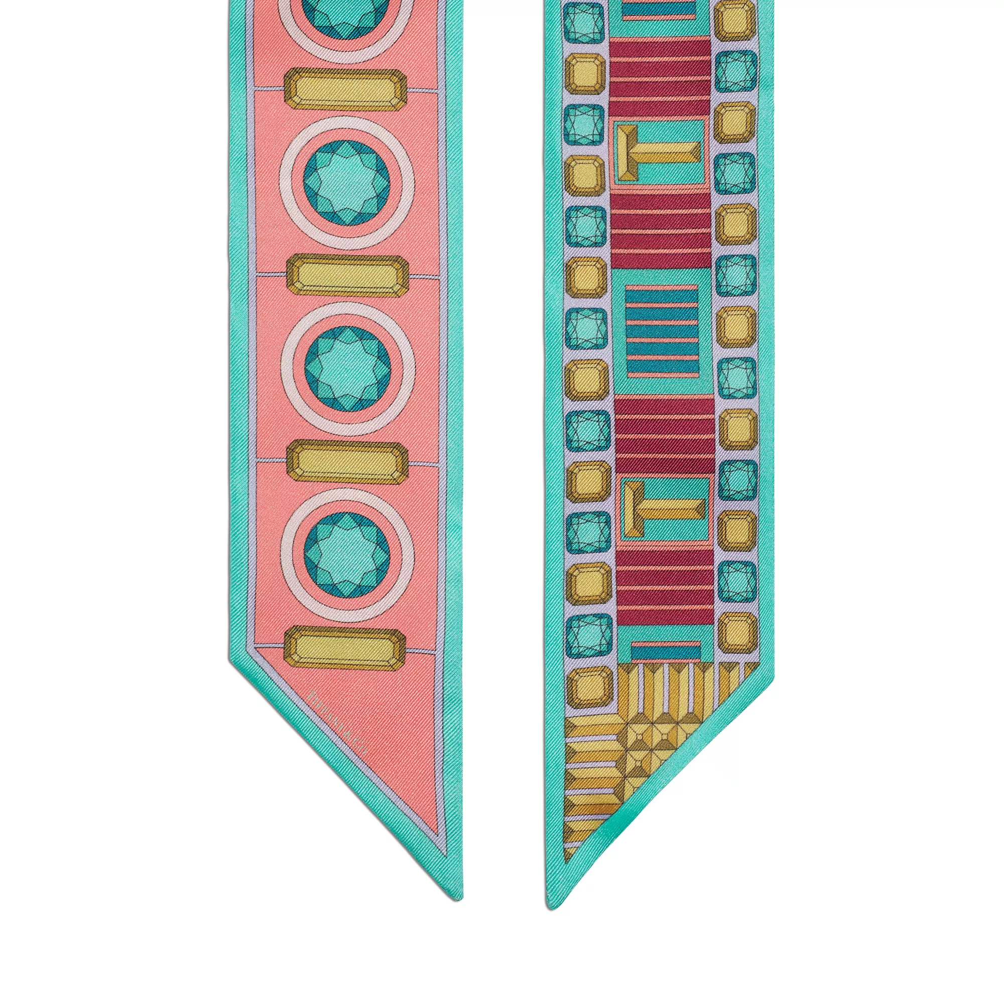 Tiffany Facets ist von vielen Facetten inspiriert: unserer Verbindung zu New York, unserem weltweiten Vermächtnis des Versprechens der ewigen Liebe sowie unserer Kompetenz als führender Anbieter von außergewöhnlichen Diamanten und farbigen Edelsteinen. Dieser schmale Seidenschal überzeugt am Saum mit von Edelsteinen inspirierten Motiven und ineinandergreifenden Ts. Tragen Sie ihn als Statement-Schmuckstück oder binden Sie ihn an den Griff Ihrer Handtasche.