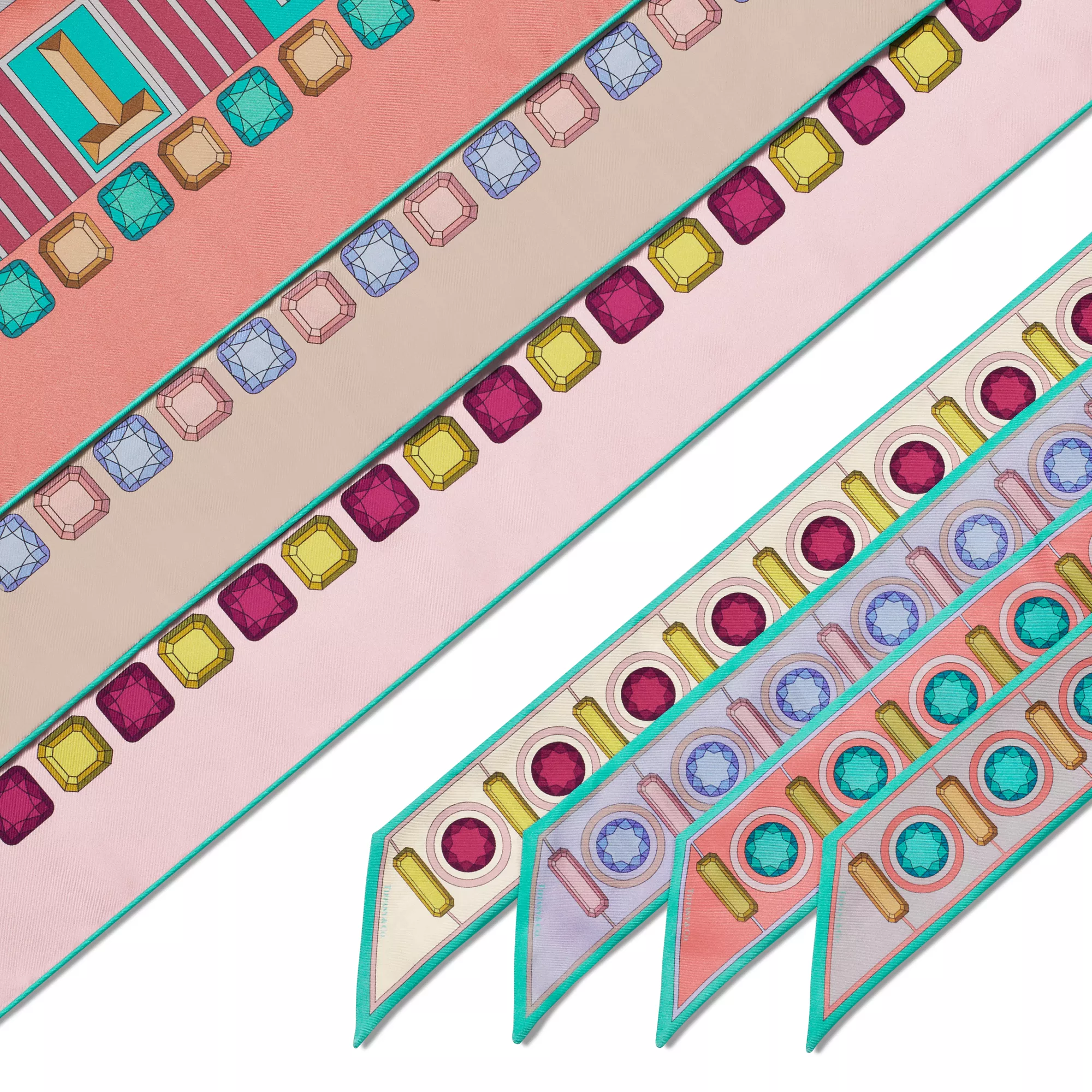 Tiffany Facets ist von vielen Facetten inspiriert: unserer Verbindung zu New York, unserem weltweiten Vermächtnis des Versprechens der ewigen Liebe sowie unserer Kompetenz als führender Anbieter von außergewöhnlichen Diamanten und farbigen Edelsteinen. Dieser schmale Seidenschal überzeugt am Saum mit von Edelsteinen inspirierten Motiven und ineinandergreifenden Ts. Tragen Sie ihn als Statement-Schmuckstück oder binden Sie ihn an den Griff Ihrer Handtasche.