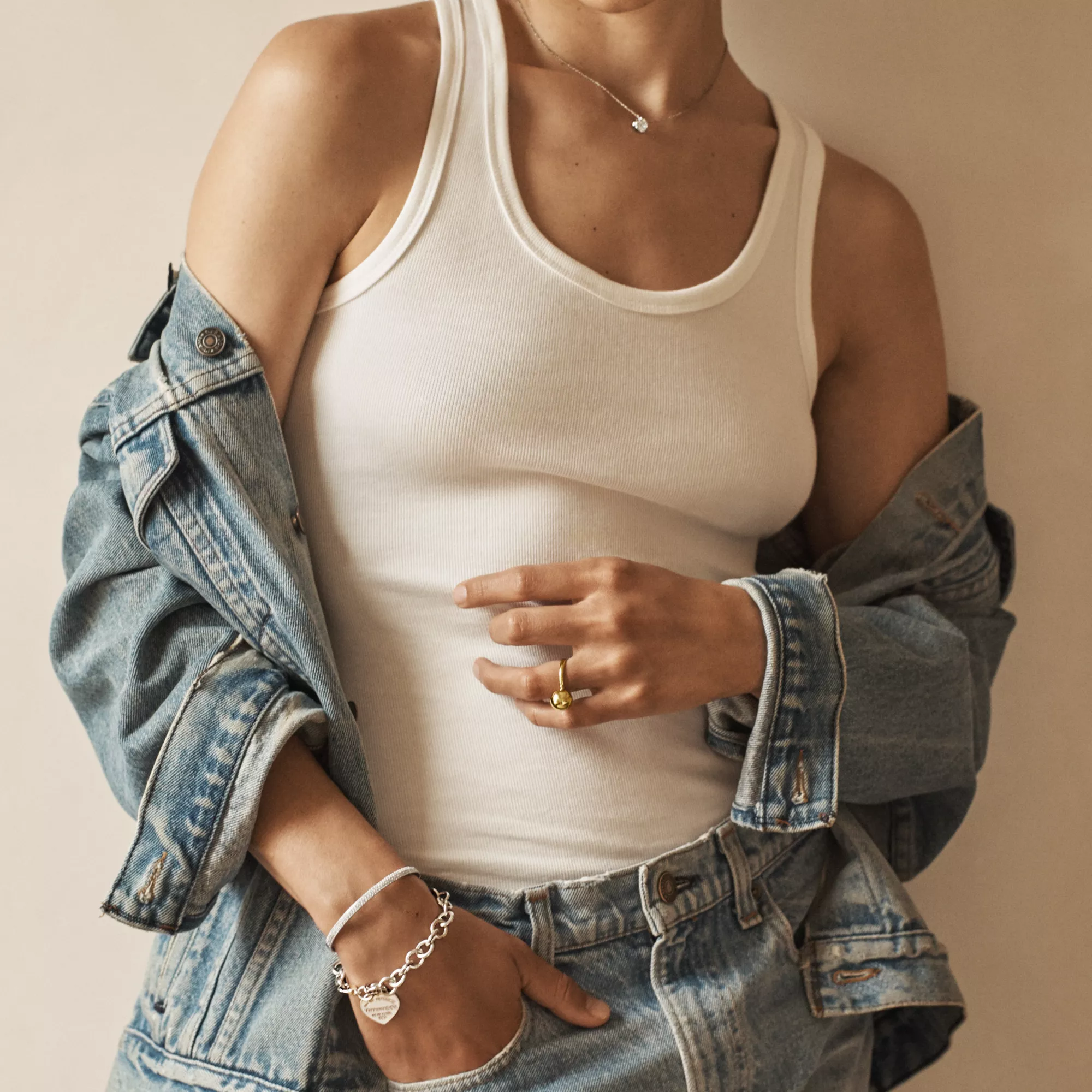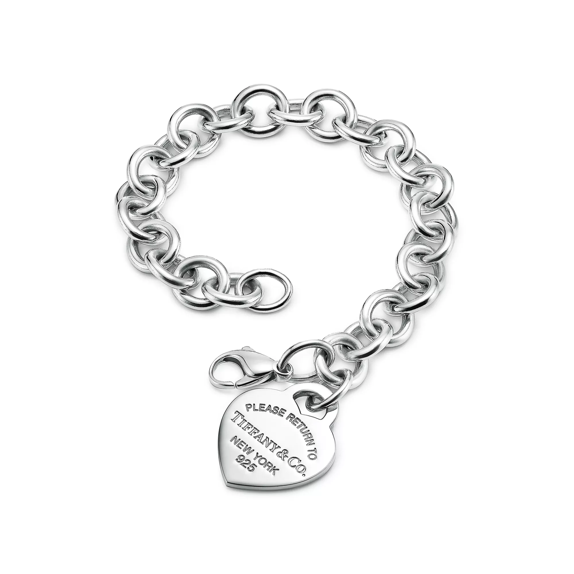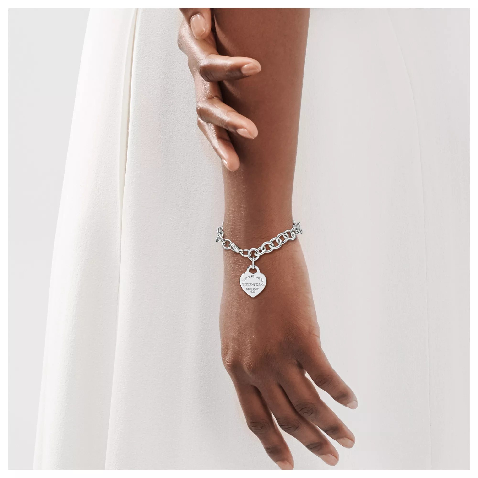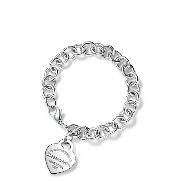 Dieses Bettelarmband, das mit markanten Gliedern und einem unverwechselbaren herzförmigen Anhänger besticht, ist ein Design, das sich dauerhafter Beliebtheit erfreut. Die Return to Tiffany™ Kollektion, die von dem 1969 eingeführten ikonischen Schlüssel-Anhänger inspiriert wurde, ist die Neuerfindung eines Klassikers. Tragen Sie es kombiniert mit anderen Designs in Sterlingsilber.