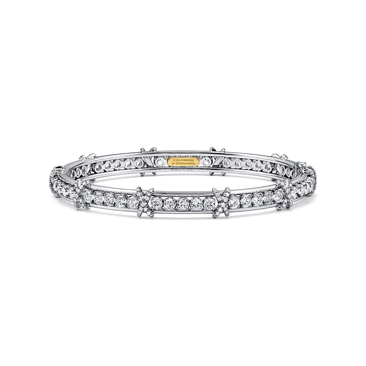 Sixteen Stone by Tiffany gilt als Symbol der nährenden Kraft der Liebe. Das Kreuzstichmotiv der Kollektion wurde im Jahr 1959 von dem legendären Designer Jean Schlumberger entworfen und ist von seinen familiären Wurzeln in der Textilherstellung inspiriert. Diamanten im runden Brillantschliff wechseln sich hier mit mehreren X in Platin ab und schaffen dieses atemberaubende Design.