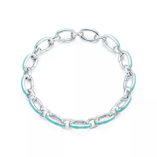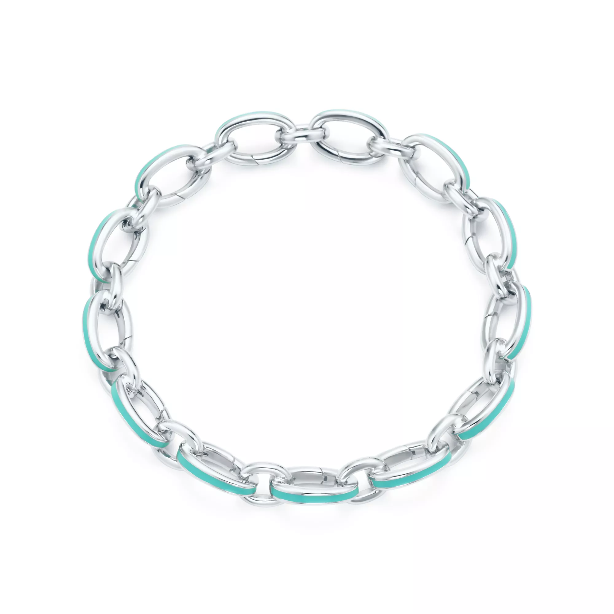 Gliederarmband in Sterlingsilber mit Emaille-Glasur in Tiffany Blue®, 19 cm lang.
