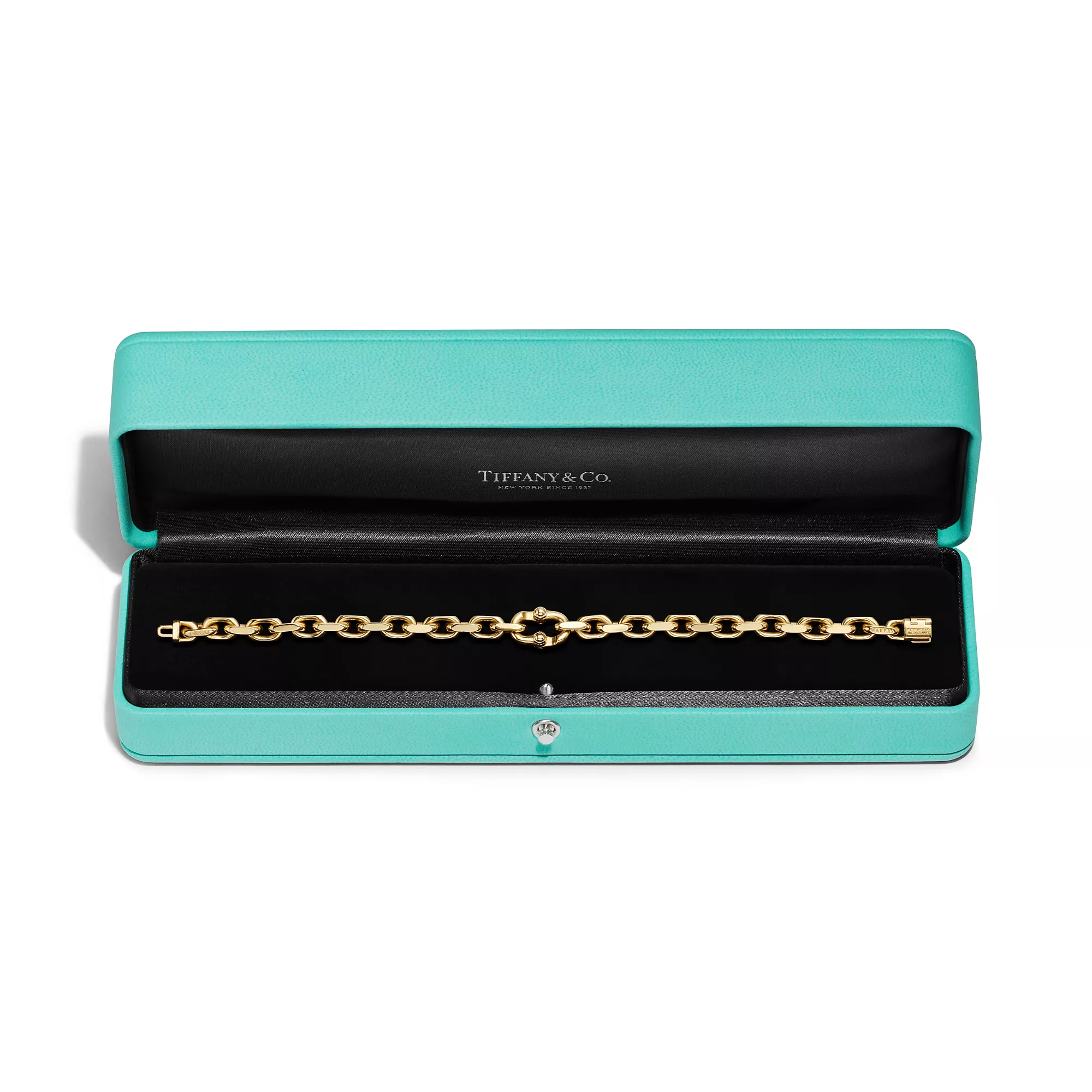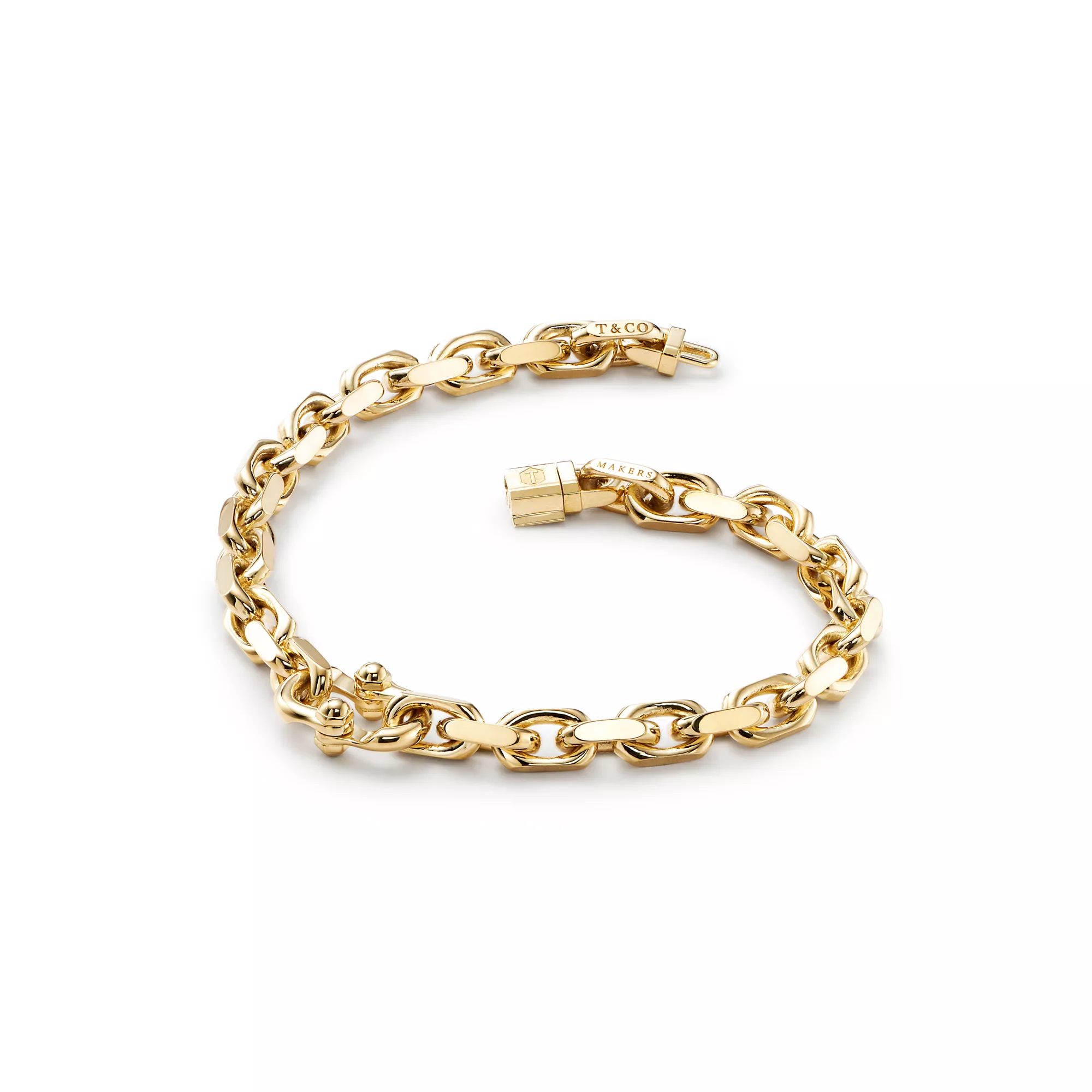 Mit seinen Gliedern in 18 Karat Gold fängt dieses Gliederarmband den praktischen Geist des klassischen amerikanischen Designs ein. Die Tiffany 1837™ Makers Kollektion, die ein von dem berühmten Tiffany Atelier inspiriertes Makers-Symbol trägt, zelebriert die Tiffany Tradition der meisterhaften Handwerkskunst auf eine moderne Weise. Dieses Modell sieht sowohl einzeln getragen als auch in Kombination mit einer Tiffany Uhr cool aus.