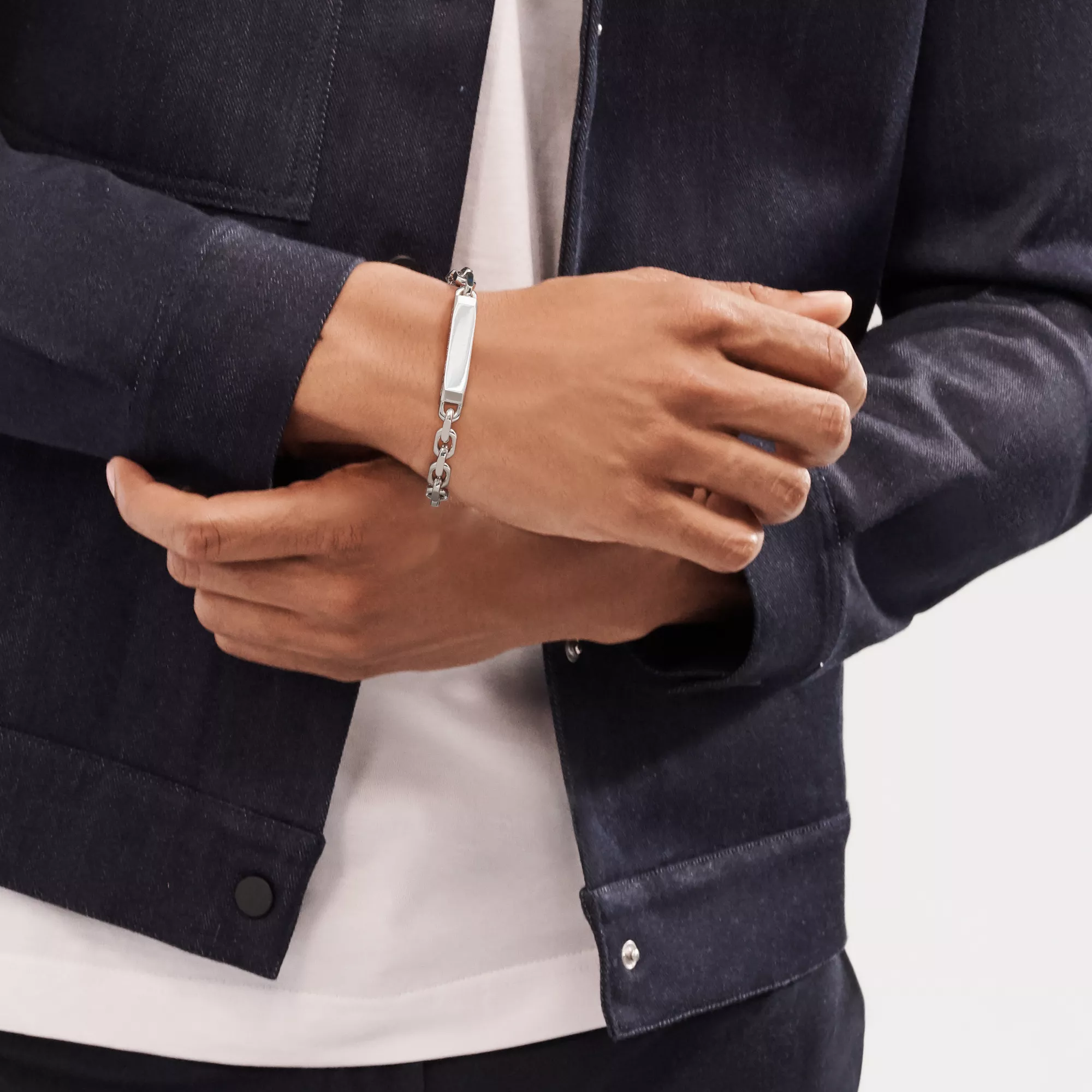 Dieses aus Sterlingsilber aufwändig gestaltete I.D.-Gliederarmband mit einem perfekt zum Gravieren geeigneten Steg fängt den praktischen Geist des klassischen amerikanischen Designs ein. Die Tiffany 1837™ Makers Kollektion, die ein von dem berühmten Tiffany Atelier inspiriertes Makers-Symbol trägt, zelebriert die Tiffany Tradition der meisterhaften Handwerkskunst auf eine moderne Weise. Dieser Stil sieht sowohl einzeln getragen als auch in Kombination mit einer Tiffany Uhr cool aus.