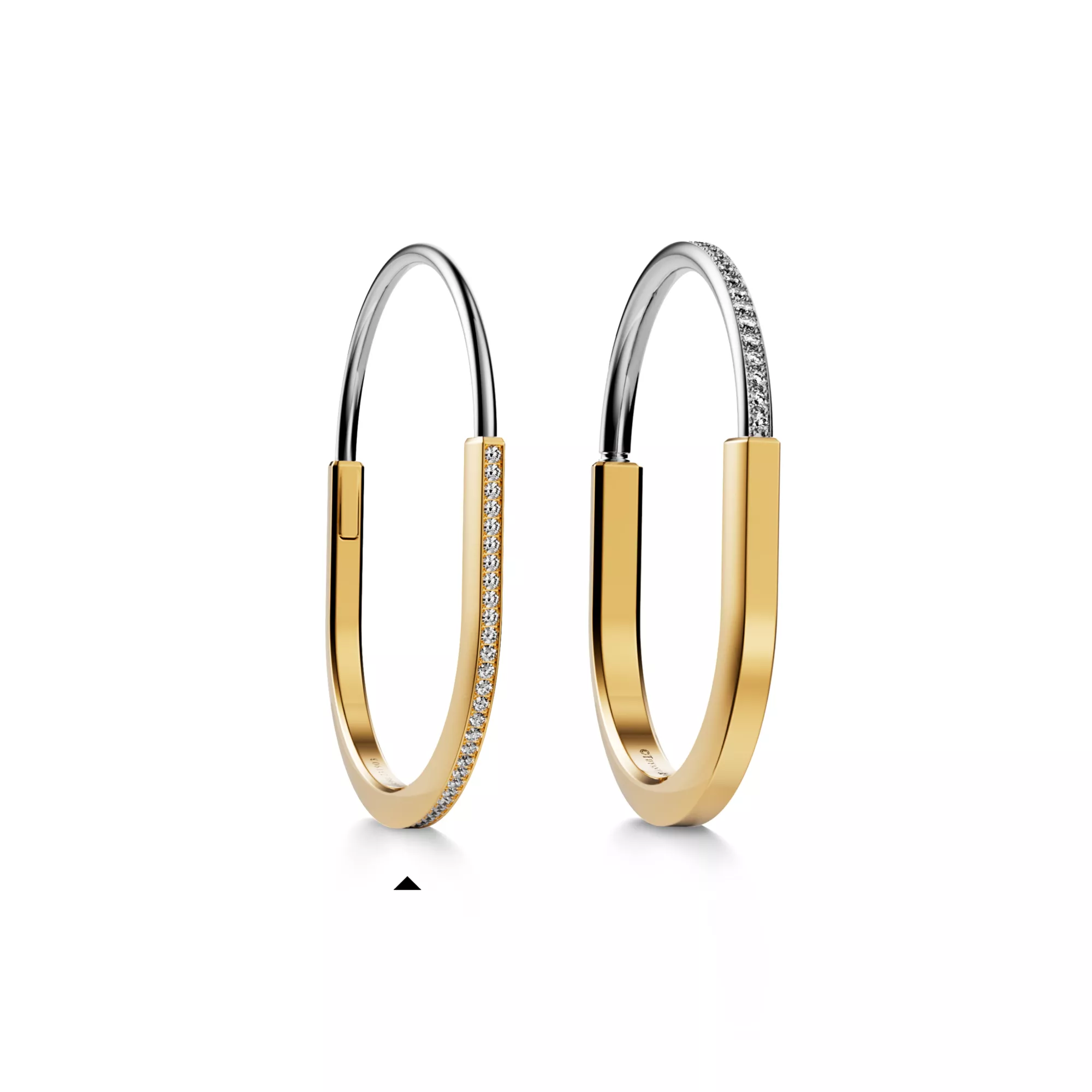 Tiffany Lock Schmaler Armreif in Gelb- und Weißgold mit halben Pavé-Diamanten