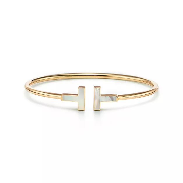 Tiffany T Wire Armreif in Gelbgold mit Perlmutt