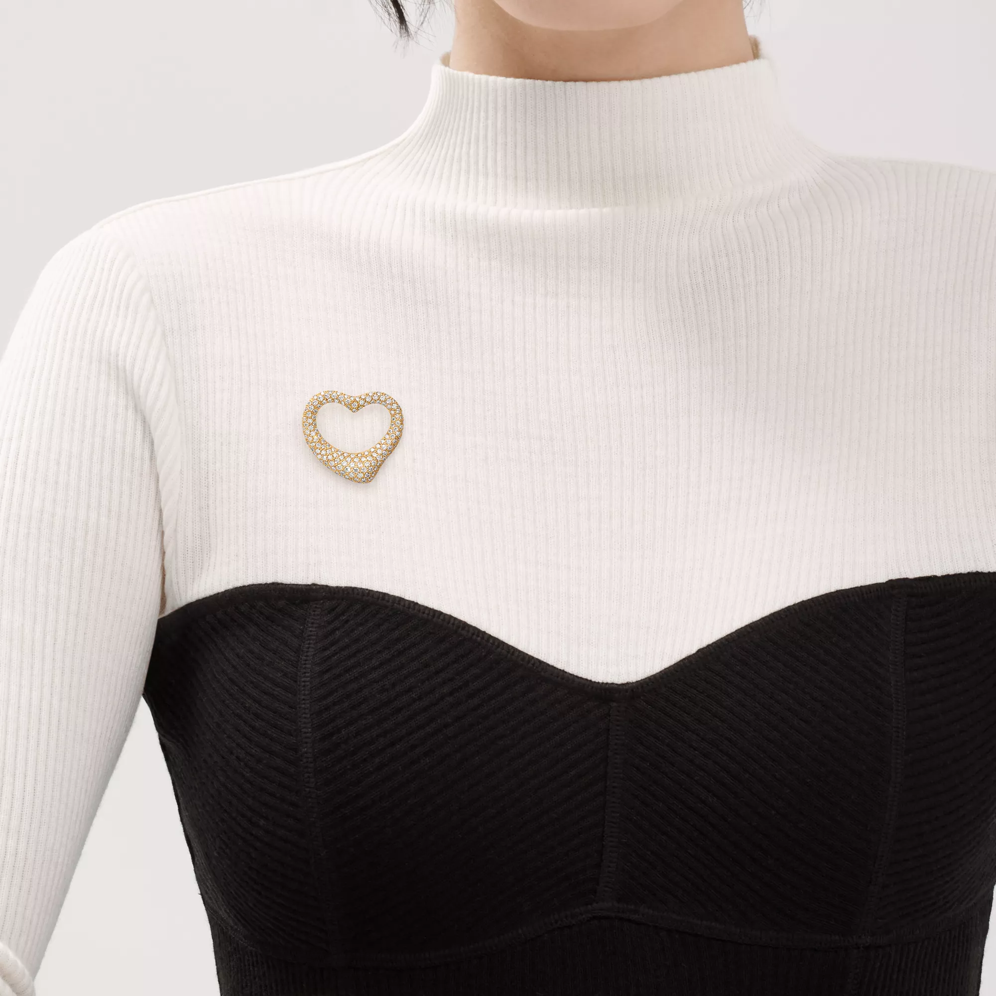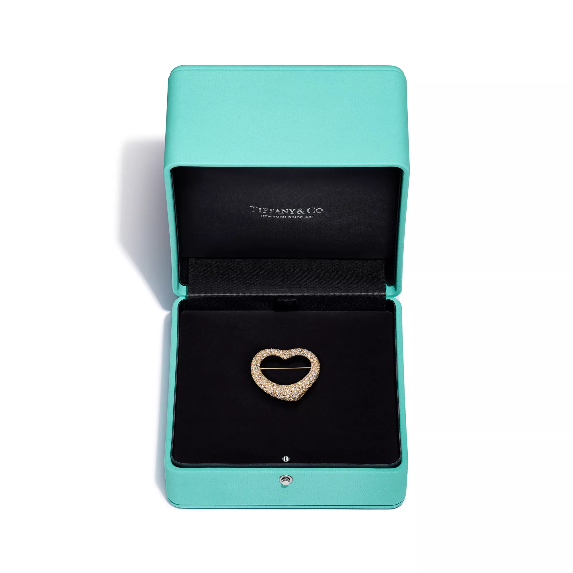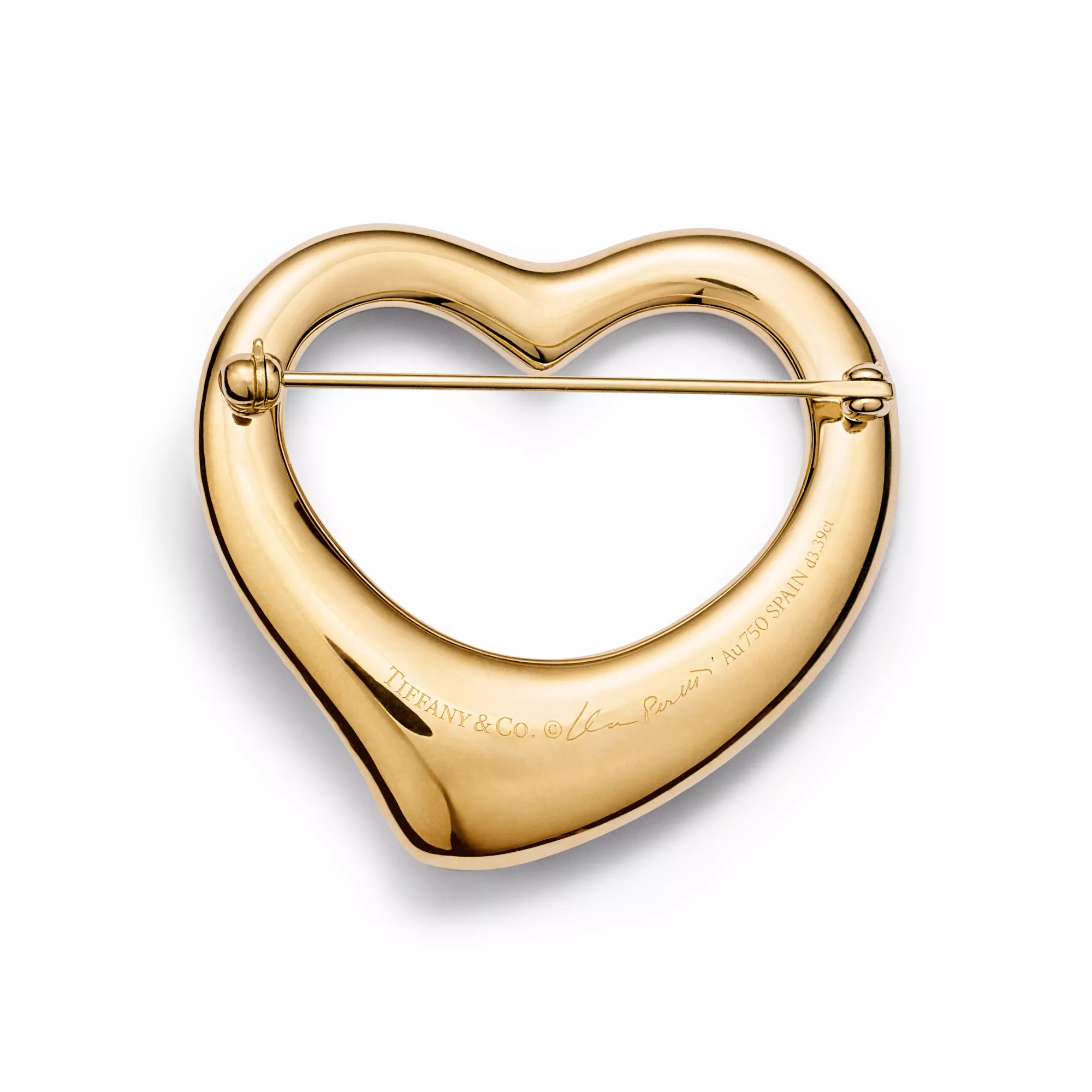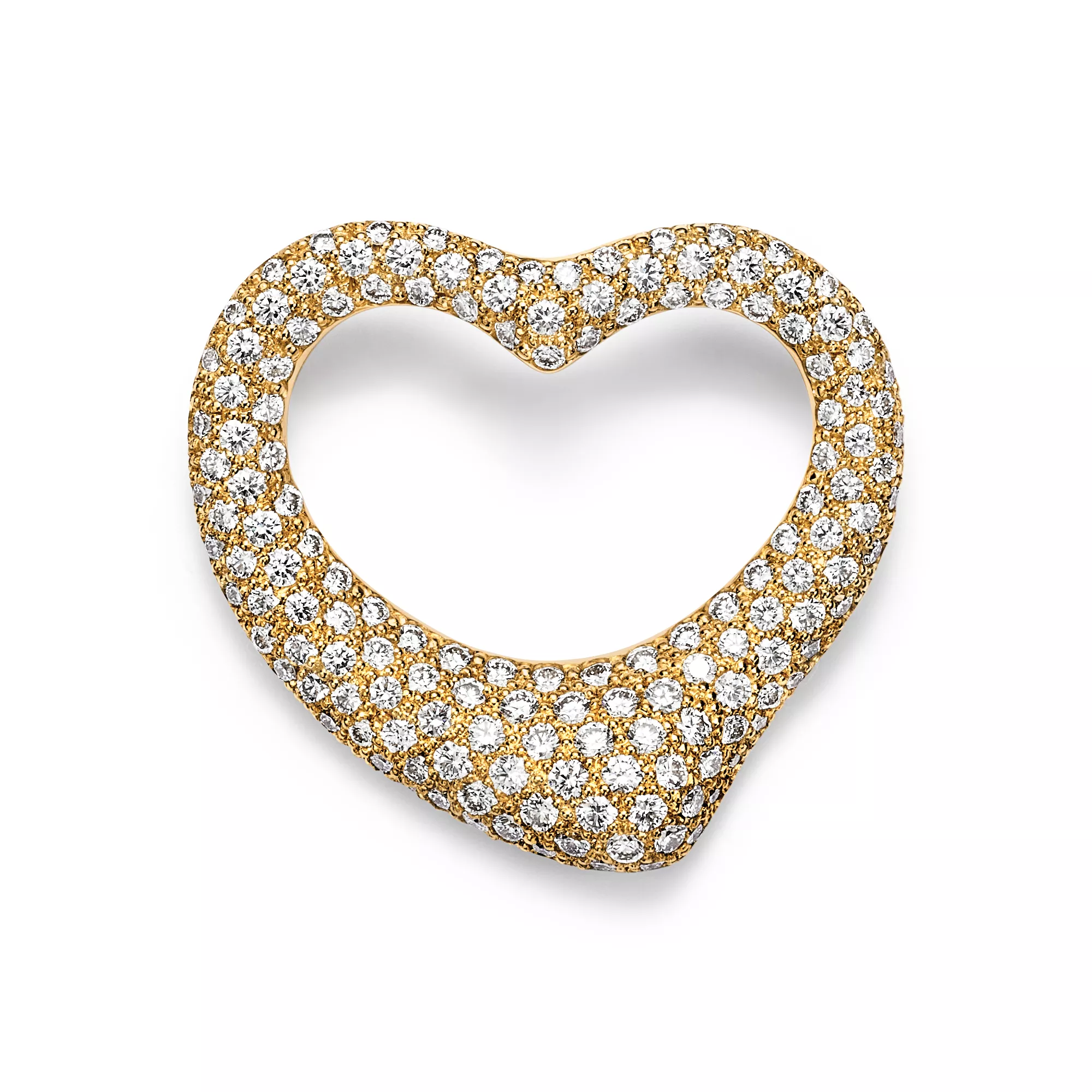 Die schlichte, bewegende Form der Elsa Peretti Open Heart Kreationen zelebriert den Geist der Liebe. Dieser schicke Style ist einer ihrer legendärsten, meisterhaft in Gelbgold gefertigt mit von Hand gesetzten Pavé-Diamanten. Tragen Sie die Brosche am Kragen einer Bluse oder am Revers einer Jacke für einen ganz besonderen Look.