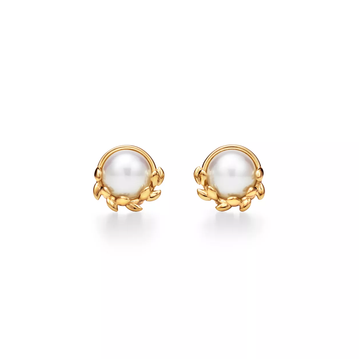 Olive Leaf Ohrstecker in Gelbgold mit Perlen