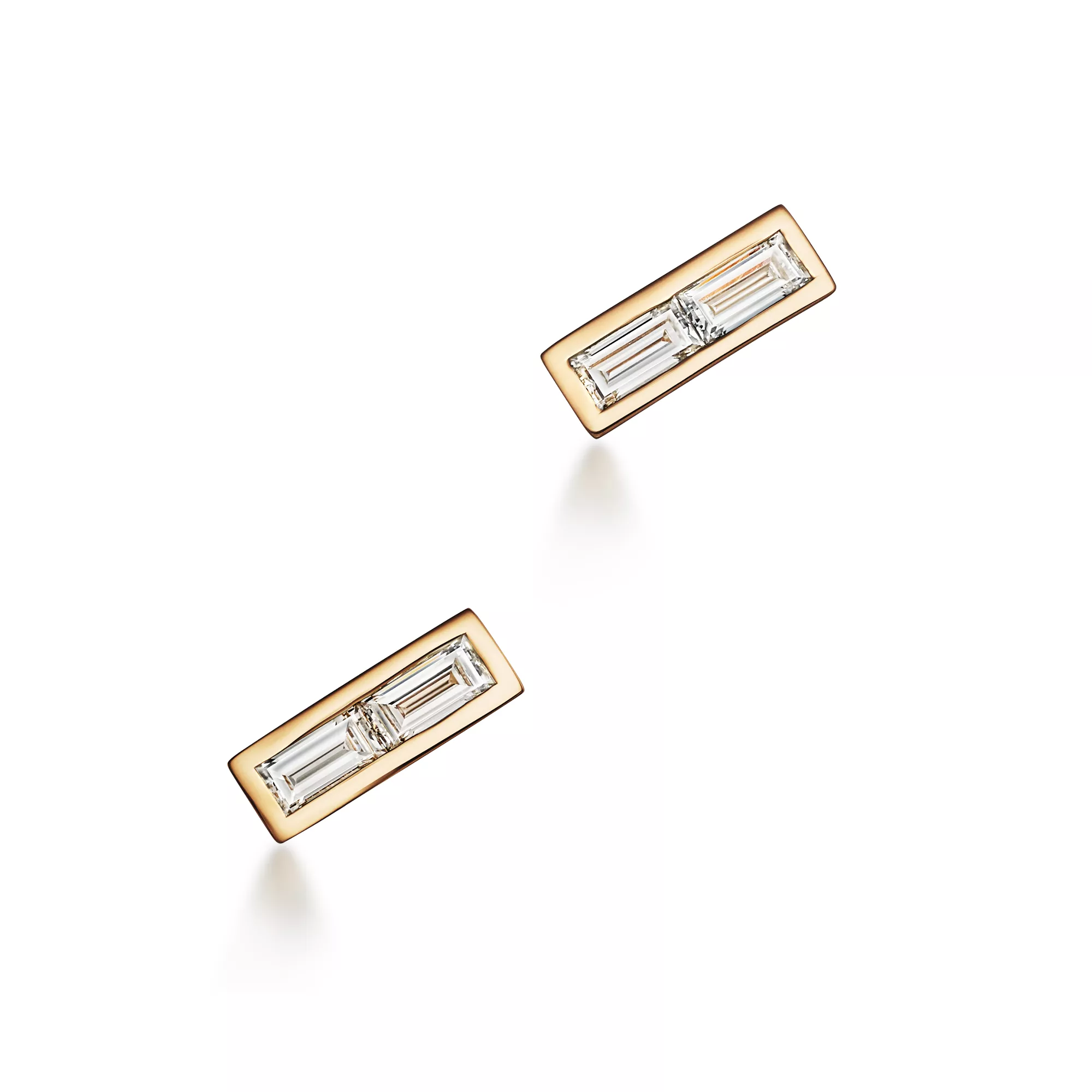 Stab-Ohrringe in 18 Karat Gold mit Diamanten im Baguetteschliff