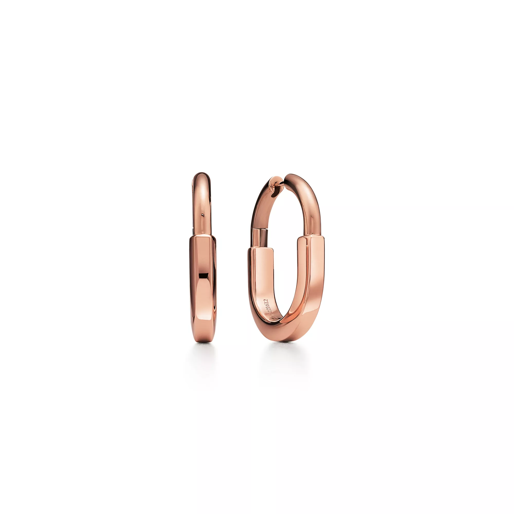 Tiffany Lock, inspiriert von einem Vorhängeschloss aus dem Tiffany Archiv aus dem Jahr 1883, ist ein Symbol der ewigen Liebe. Lock ist ein universelles Symbol für das, was am wichtigsten ist, und wurde entworfen, um Geliebtes zu bewahren. Diese Ohrringe sind für einen durchgehenden Look mit einem Federverschluss ausgestattet. Sie sind meisterhaft in 18 Karat Roségold gefertigt.