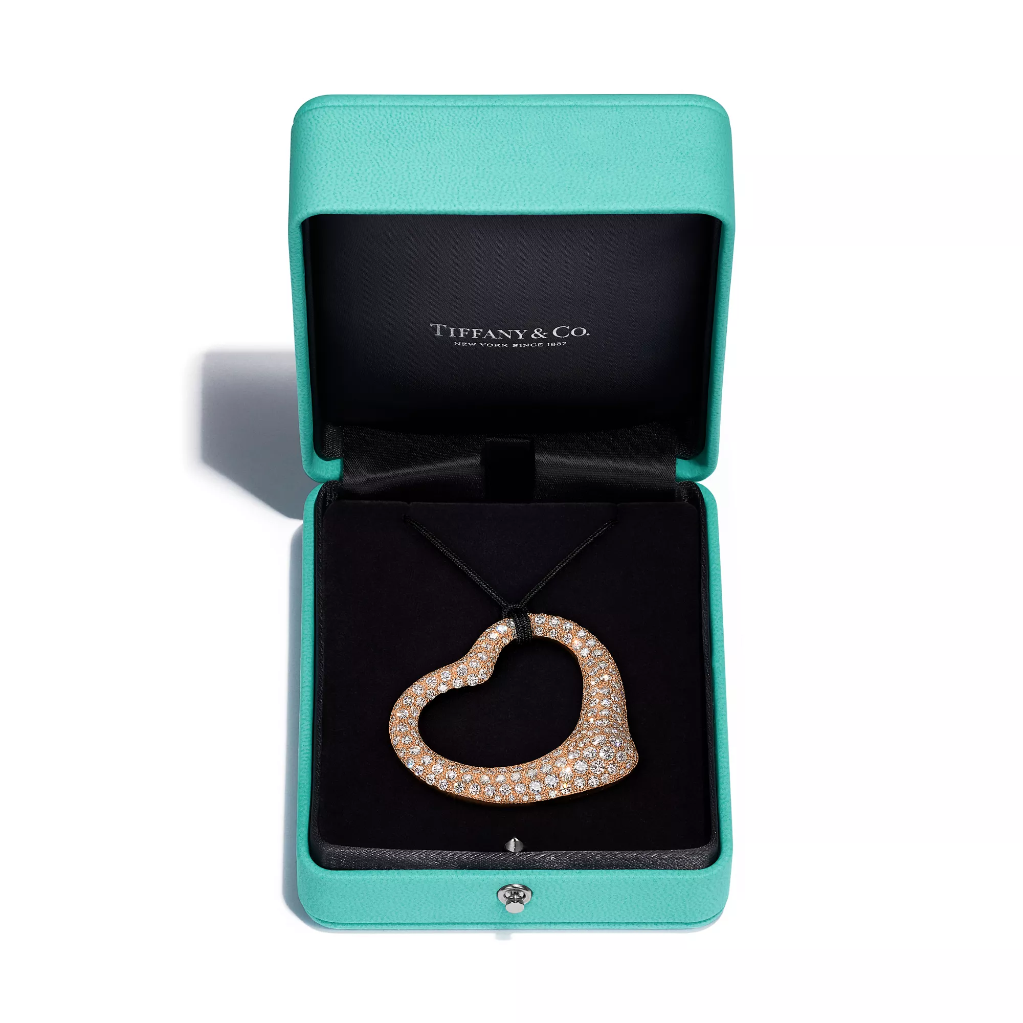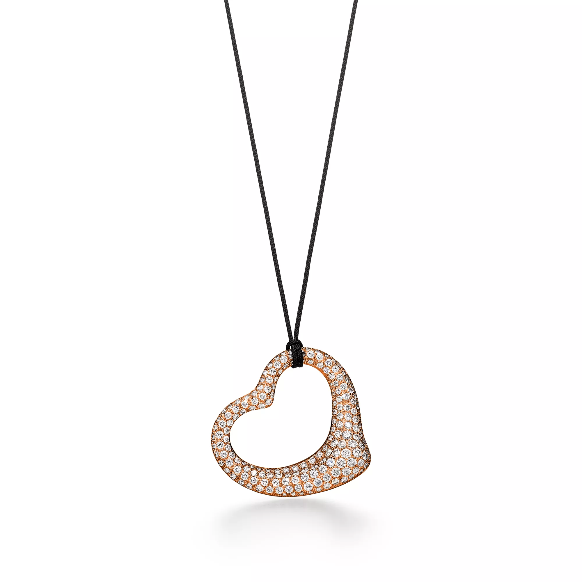 Elsa Peretti® Open Heart Anhänger in Roségold mit Pavé-Diamanten und schwarzer Seide