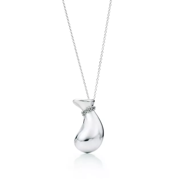 Eines der ersten Schmuckdesigns von Elsa Peretti®. Anhänger aus Sterlingsilber. Größe Small, an einer 61 cm langen Kette. 27 x 15 mm. Der Krug ist geöffnet und es kann eine Blume hineingesteckt werden. Copyright der Originaldesigns by Elsa Peretti®.