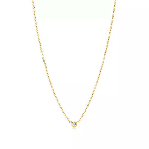 In der Mitte dieses ebenso filigranen wie edlen Anhängers aus 18 Karat Gelbgold erstrahlt ein einzelner handgeschliffener Diamant. Elsa Perettis revolutionäre Diamonds by the Yard® Kollektion besticht mit einer Kombination aus feinen fließenden Ketten und Edelsteinen in Bezel-Fassung, die den Stellenwert von Diamanten in der Modewelt änderten. Dieses Design, das an einen einzelnen auf der Haut schwebenden Lichttropfen erinnert, kann mit anderen Diamonds by the Yard® Anhängern und Halsketten in verschiedenen Längen und Metallen kombiniert werden, um einen ganz individuellen Look zu kreieren.