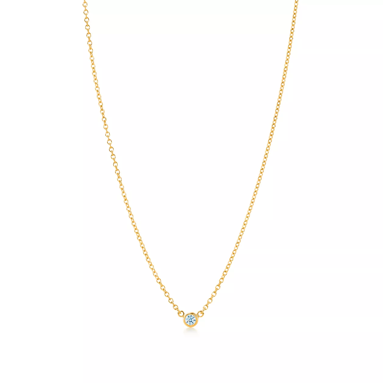 In der Mitte dieses ebenso filigranen wie edlen Anhängers aus 18 Karat Gelbgold erstrahlt ein einzelner handgeschliffener Diamant. Elsa Perettis revolutionäre Diamonds by the Yard® Kollektion besticht mit einer Kombination aus feinen fließenden Ketten und Edelsteinen in Bezel-Fassung, die den Stellenwert von Diamanten in der Modewelt änderten. Dieses Design, das an einen einzelnen auf der Haut schwebenden Lichttropfen erinnert, kann mit anderen Diamonds by the Yard® Anhängern und Halsketten in verschiedenen Längen und Metallen kombiniert werden, um einen ganz individuellen Look zu kreieren.