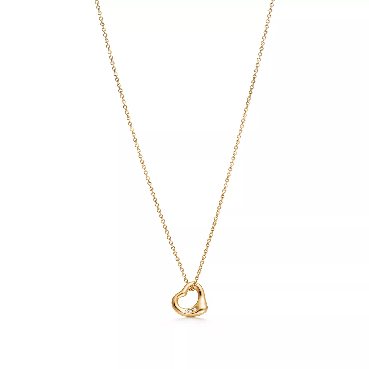 Die schlichte, bewegende Form der Elsa Peretti Open Heart Kreationen zelebriert den Geist der Liebe. Diamanten im Brillantschliff zeichnen die eleganten Rundungen dieses zeitlosen Anhängers nach.