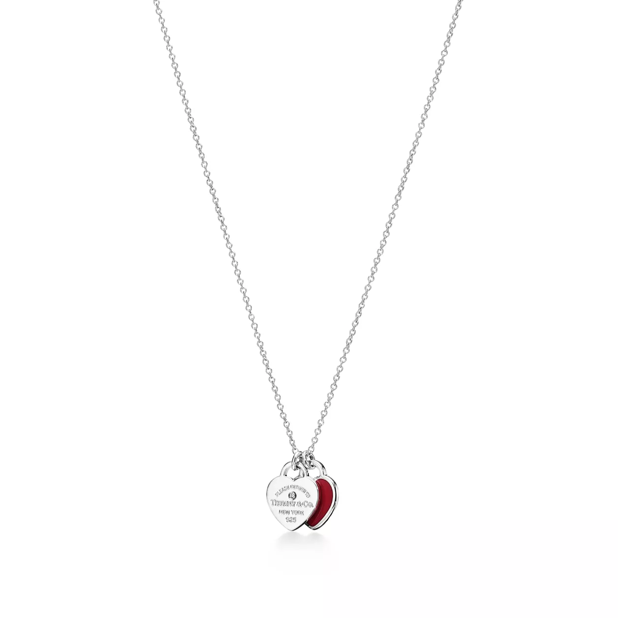 Die Return to Tiffany™ Kollektion wurde von einem Schlüssel-Anhänger inspiriert, den wir 1969 erstmals vorstellten, und ist berühmt für ihr charakteristisches Motiv. Dieser Anhänger in Sterlingsilber überzeugt mit einem Paar ikonischer Mini-Herzanhänger, die an einer edlen Gliederkette hängen. Ein Anhänger ist mit einem Diamanten im runden Brillantschliff besetzt, während der andere Anhänger für einen verspielten Farbakzent mit roter Emaille-Glasur versehen ist. Kombinieren Sie ihn mit anderen filigranen Halsketten oder setzen Sie Kontraste mit extravagantem Ketten für einen überraschenden Look.