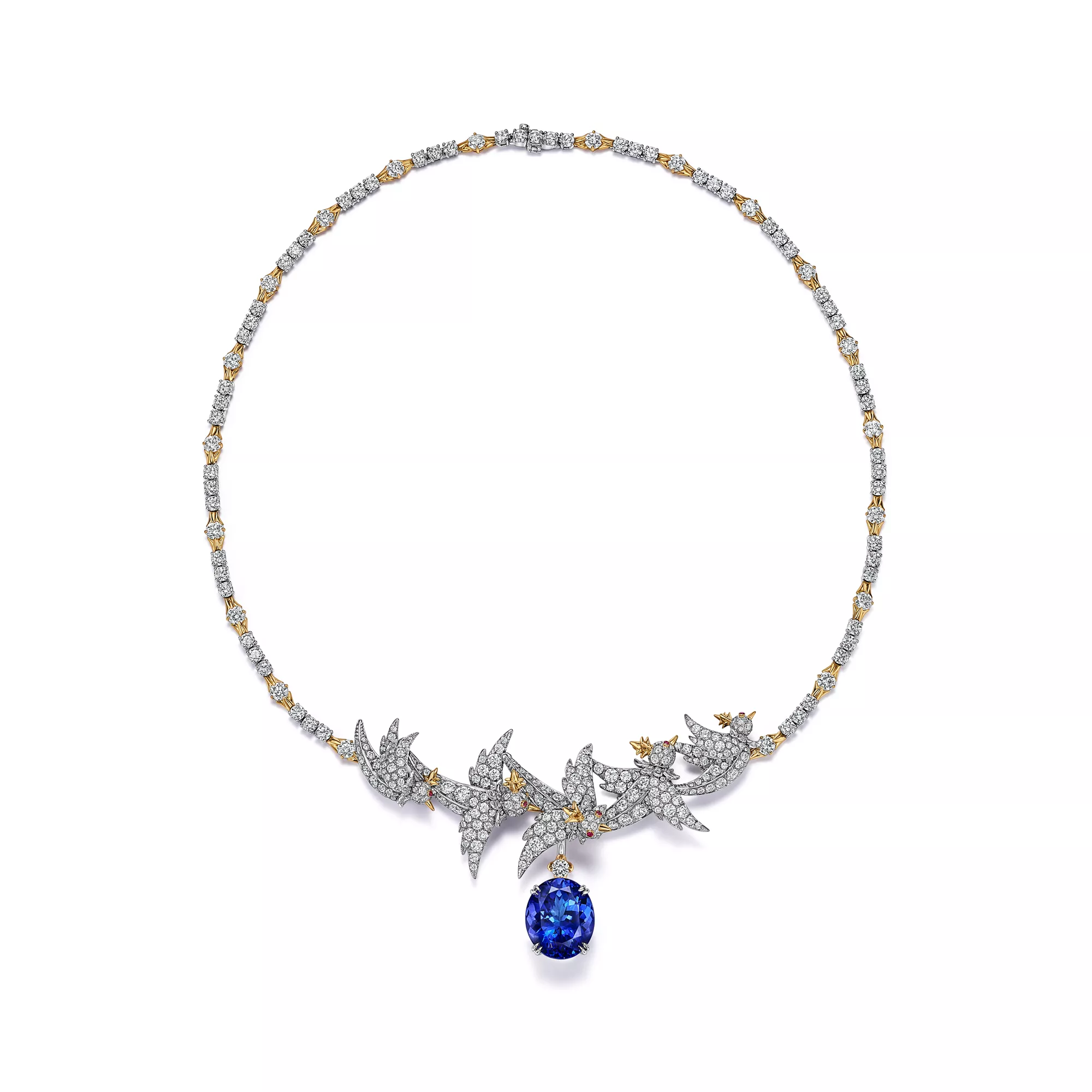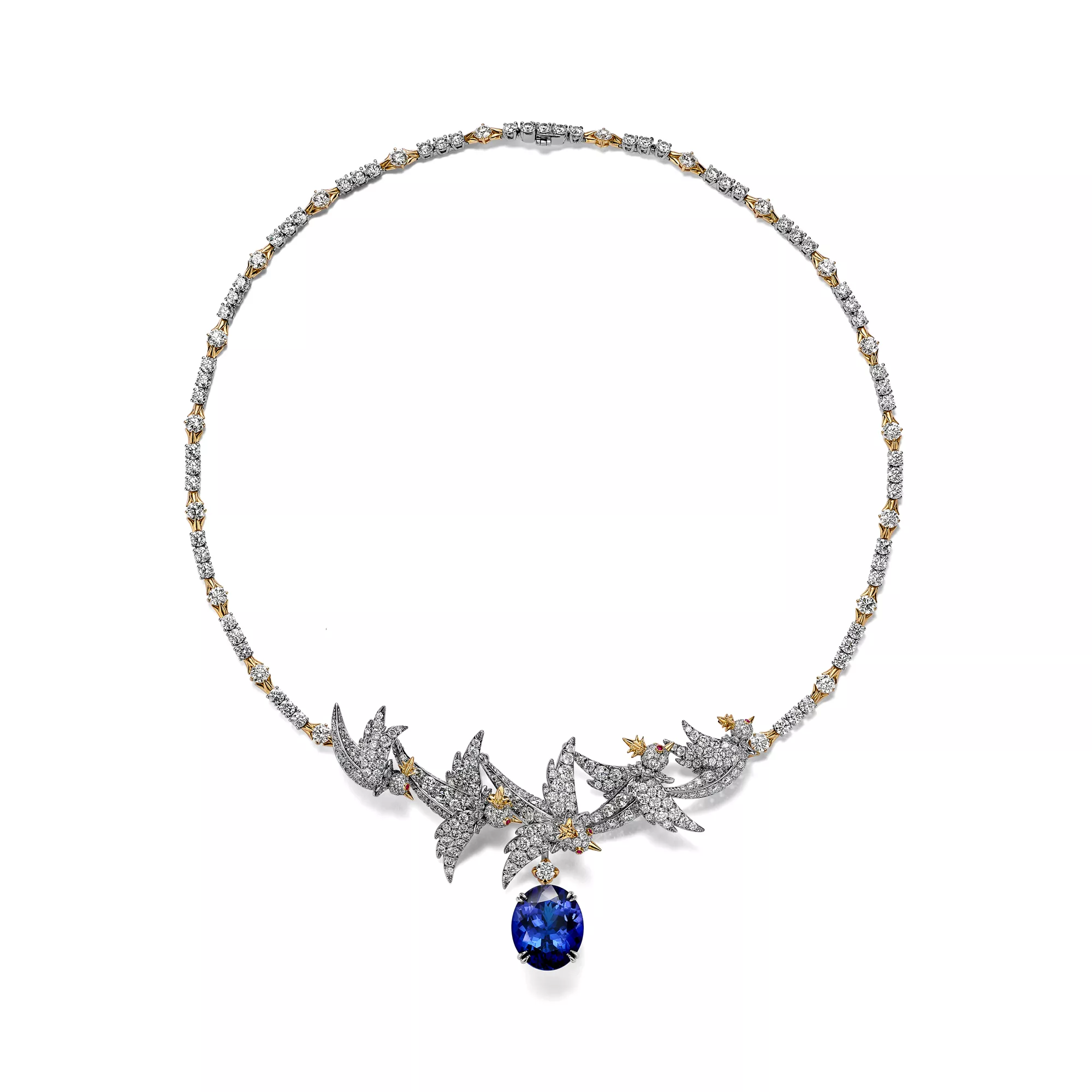 Die symbolträchtige Bird on a Rock Brosche wurde im Jahr 1965 vorgestellt und ist ein Ausdruck von Freude, Optimismus und grenzenlosen Möglichkeiten. Inspiriert von einem anmutigen gelben Kakadu, erweckte Jean Schlumberger eine Vision exquisiter Schönheit zum Leben: einen mit Diamanten besetzten Vogel, der auf einem leuchtenden Edelstein thront. Die Geschichte des Bird on a Rock erreichte 1995 einen neuen Höhepunkt, als das Haus den Tiffany Diamanten in die Brosche setzte und so die traditionsreichen Werke von Charles Lewis Tiffany und Jean Schlumberger miteinander verschmolz. Heute umfasst die Kollektion nicht nur die ikonische Brosche, sondern auch exquisiten hochwertigen und edlen Schmuck, Uhren und vieles mehr, geprägt von außergewöhnlichen Edelsteinen und unvergleichlicher Handwerkskunst. Bird on a Rock wird von den anspruchsvollsten und einflussreichsten Trendsettern der Welt getragen. Die Kreation ist das ultimative Symbol für Raffinesse, Zauber und das außergewöhnliche Know-how von Tiffany & Co.