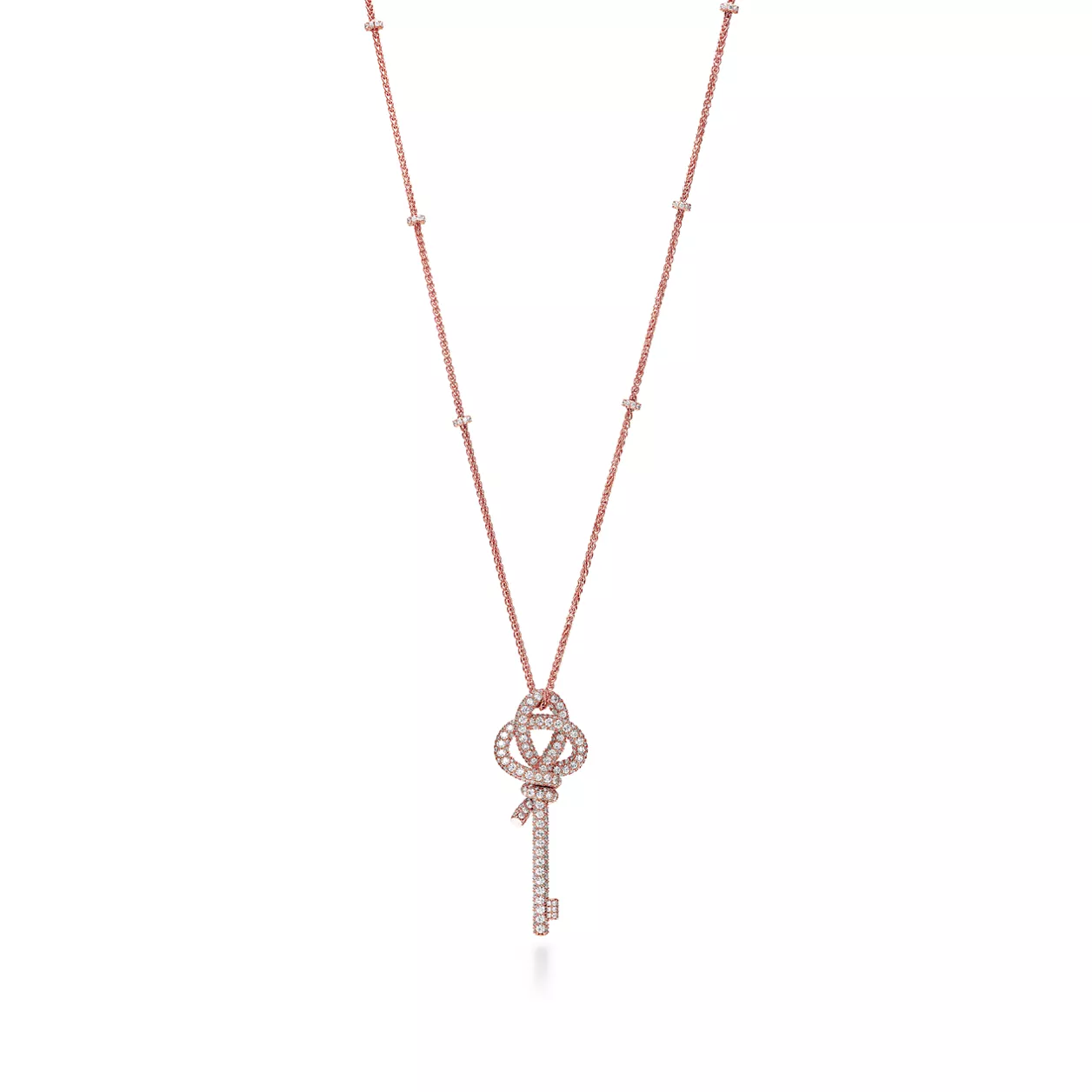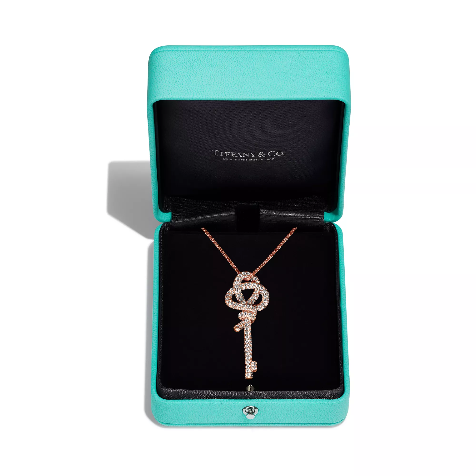 Tiffany Knot ist ein Symbol der unerschütterlichen Bande der Liebe. Inspiriert von einer Schleife aus dem Tiffany Archiv aus dem Jahr 1889 ist Knot ein Symbol für die beständigsten und bedeutungsvollsten Beziehungen im Leben. Dieser Anhänger ist aus 18 Karat Roségold gefertigt und wurde von Hand auf Hochglanz poliert. Jeder Diamant im runden Brillantschliff wurde sorgfältig ausgewählt, um die hohen Standards von Tiffany zu erfüllen. Für maximale Brillanz erfolgt die Setzung in präzisen Winkeln von Hand. Tragen Sie diesen Anhänger einzeln oder in Kombination mit klassischen Silhouetten für ein überraschendes Zusammenspiel.