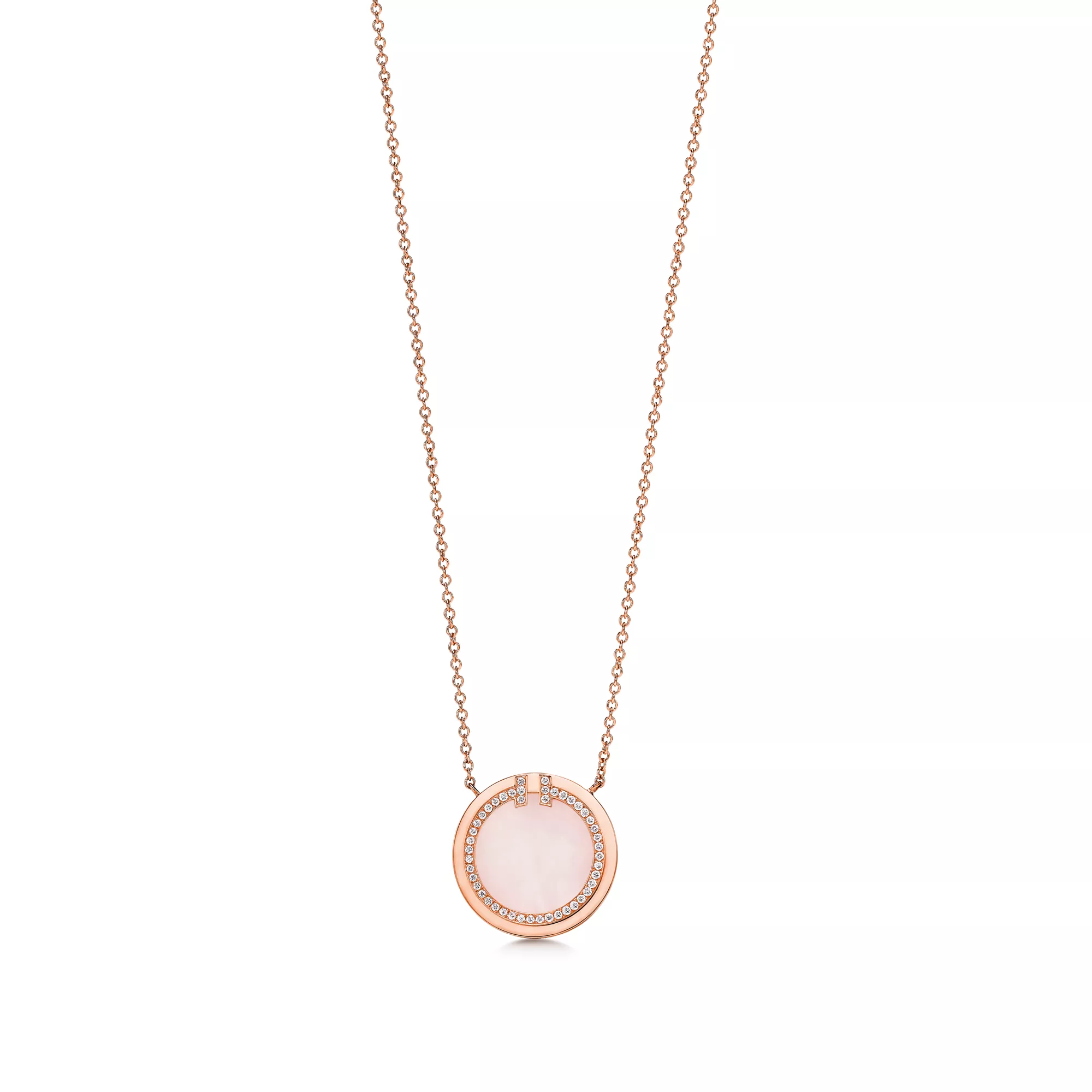 Tiffany T ist ein Symbol des unendlichen Potenzials der Liebe. Tiffany T ist inspiriert von einem Archiv-Armband aus dem Jahr 1975. Die Kollektion ist eine Hommage an das ikonische Motiv des Hauses und den Geist von New York, das Charles Lewis Tiffany als Ort der Verheißung und der Möglichkeiten betrachtete. Dieser mit Diamanten besetzte Circle Anhänger besticht mit rosa Opal, einem sehr begehrten, in der Natur vorkommenden Stein. Der leuchtende rosa Farbton des Steins bereichert das strahlende Design in 18 Karat Roségold um wunderschöne Akzente. Die ebenso facettenreiche wie ikonische Tiffany T Kollektion ist eine bleibende Erinnerung an die Beziehungen, die wir spüren, aber nicht immer sehen können. Setzen Sie Ihren persönlichen Stil in Szene, indem Sie diesen Anhänger mit anderen Tiffany Designs kombinieren und so einen extravaganten Look schaffen.