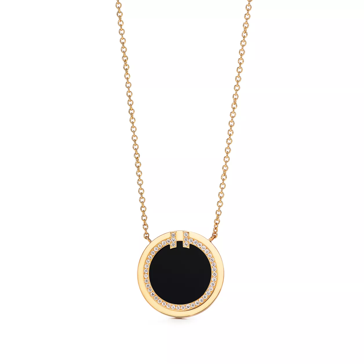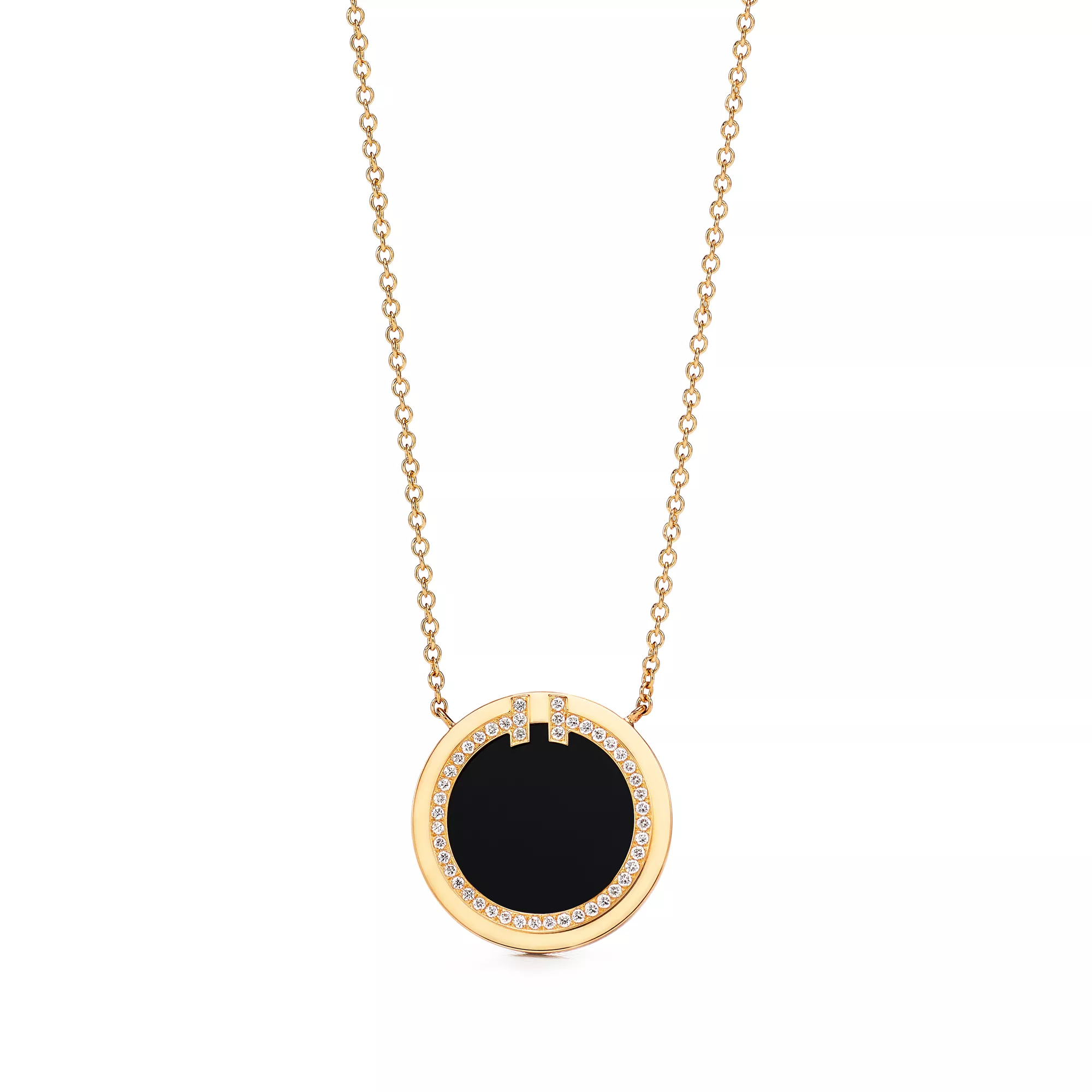 Tiffany T ist ein Symbol des unendlichen Potenzials der Liebe. Tiffany T ist inspiriert von einem Archiv-Armband aus dem Jahr 1975. Die Kollektion ist eine Hommage an das ikonische Motiv des Hauses und den Geist von New York, das Charles Lewis Tiffany als Ort der Verheißung und der Möglichkeiten betrachtete. Dieser Circle Anhänger besticht mit schwarzem Onyx, einer einzigartigen Varietät des in der Natur vorkommenden Minerals Quarz. Dieser atemberaubende Anhänger ist mit Diamanten besetzt und präsentiert sich somit in modernem Design mit glatter Oberfläche und strahlendem Glanz. Setzen Sie Ihren persönlichen Stil in Szene, indem Sie diesen Anhänger mit anderen Tiffany Designs kombinieren und so einen extravaganten Look schaffen.
