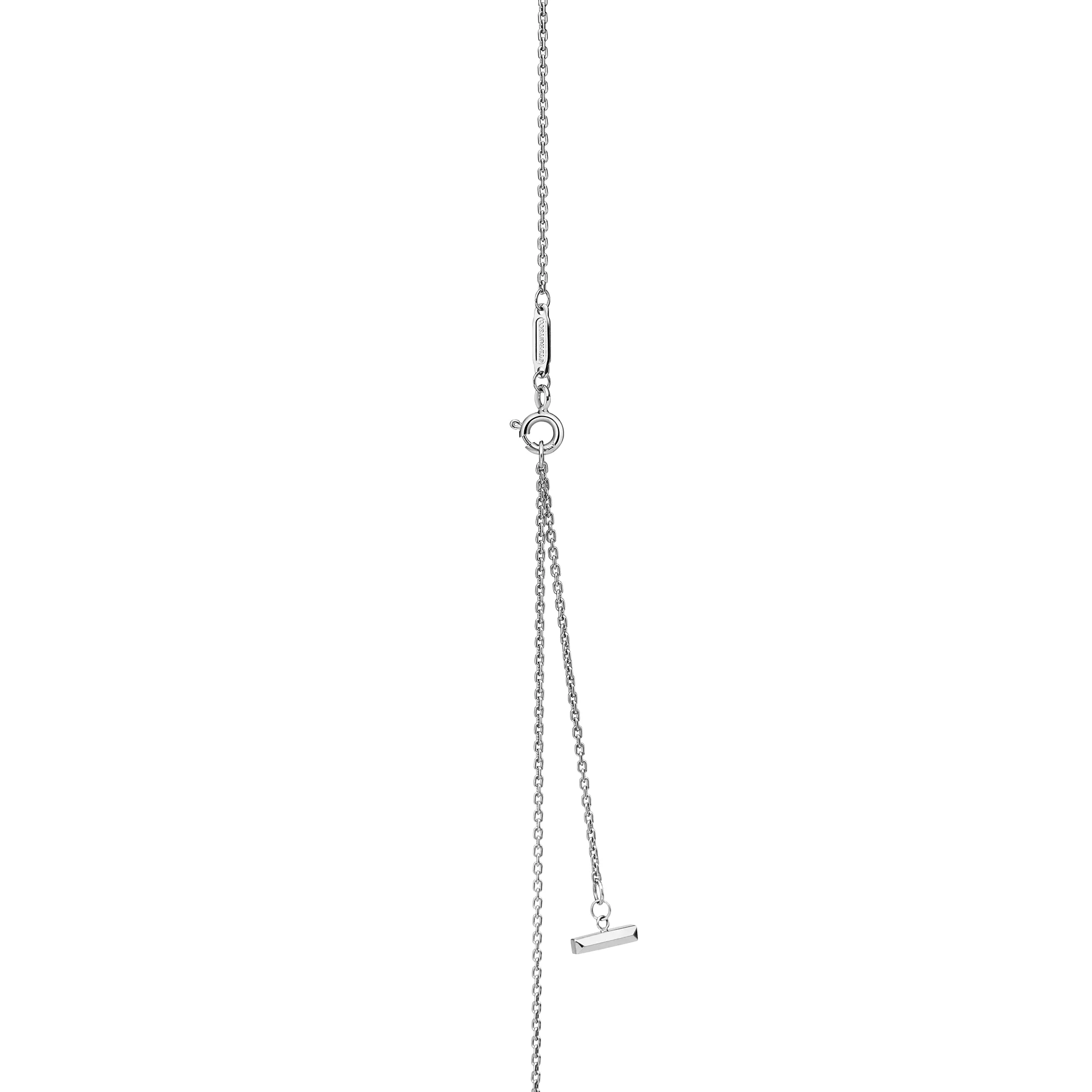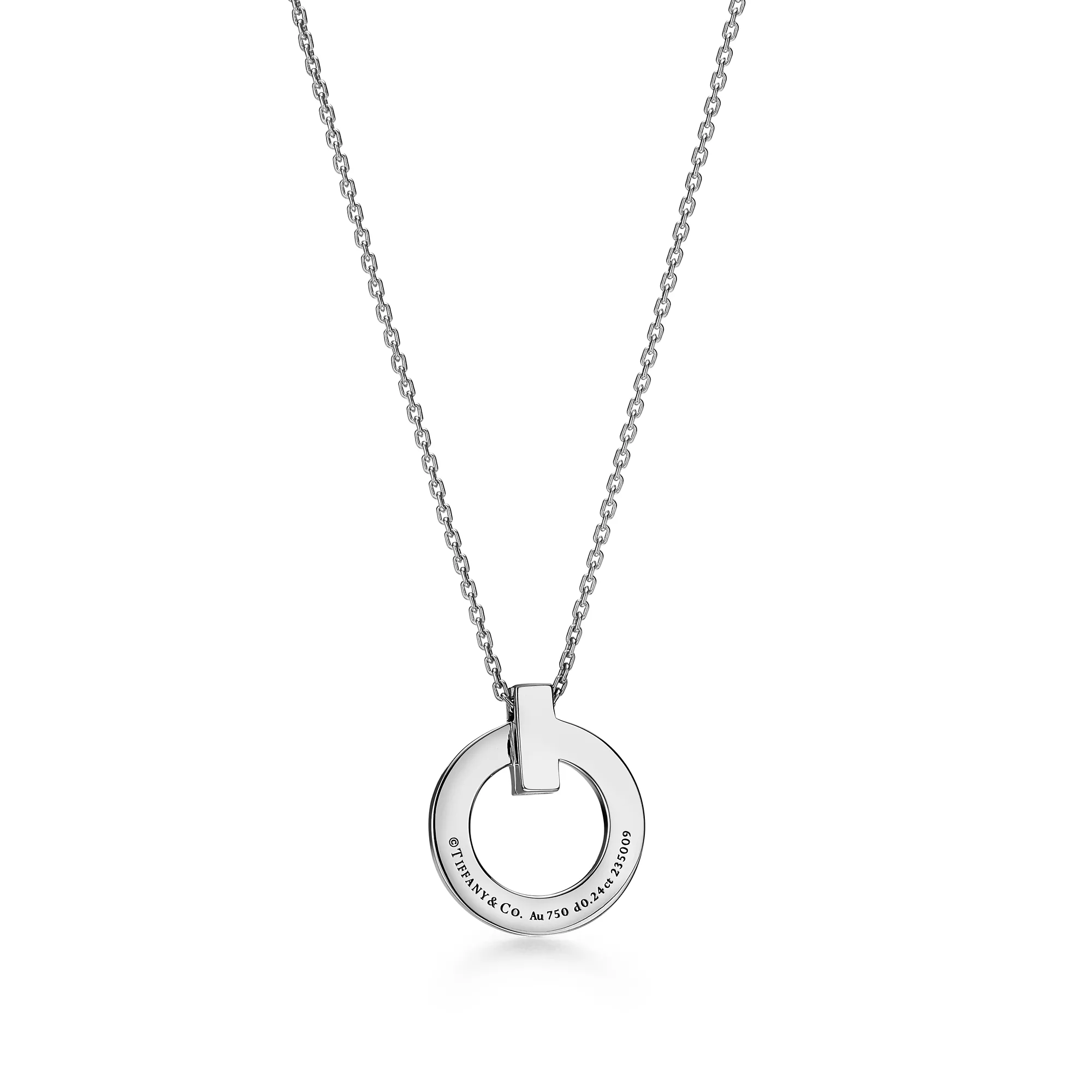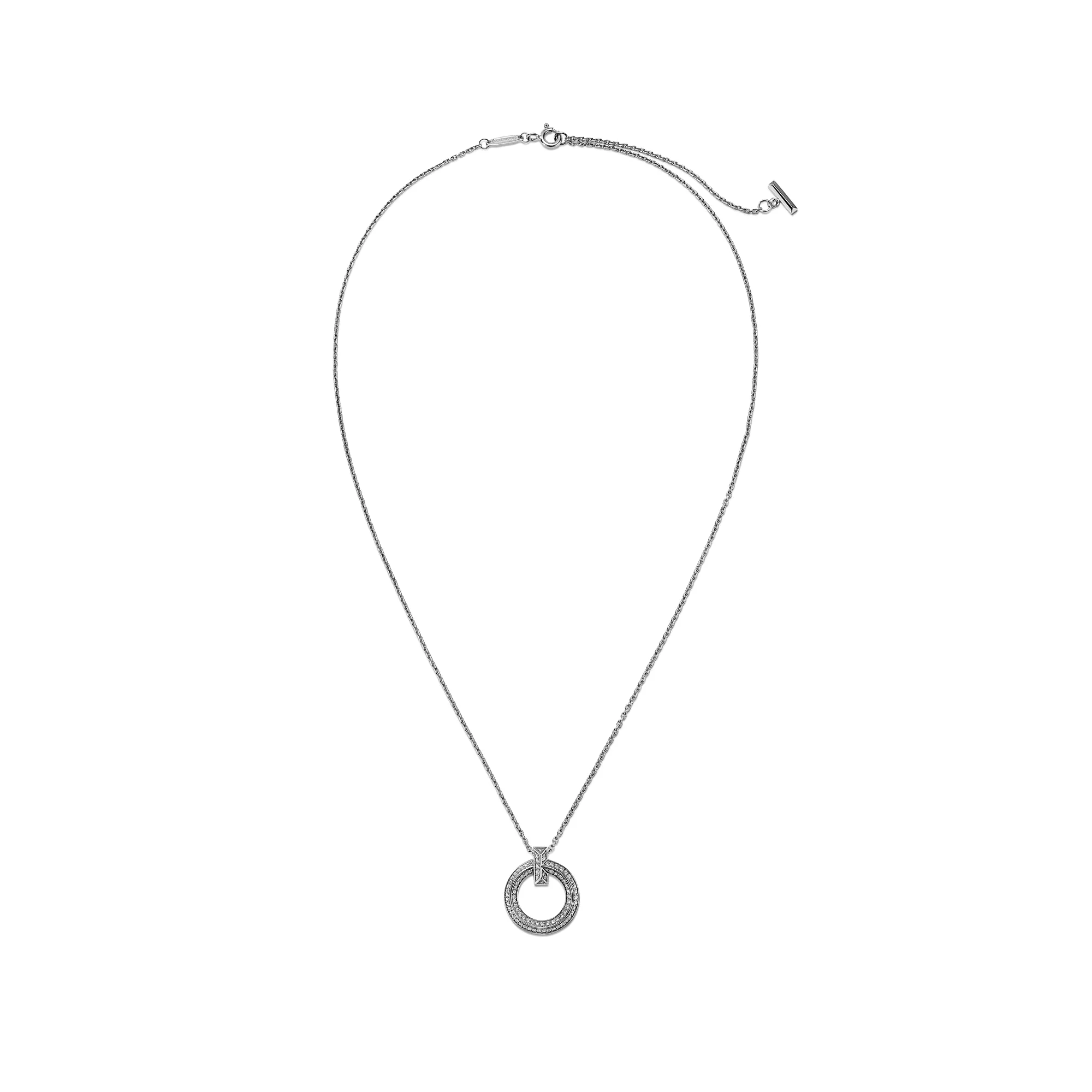 Tiffany T ist ein Symbol des unendlichen Potenzials der Liebe. Tiffany T ist inspiriert von einem Archiv-Armband aus dem Jahr 1975. Die Kollektion ist eine Hommage an das ikonische Motiv des Hauses und den Geist von New York, das Charles Lewis Tiffany als Ort der Verheißung und der Möglichkeiten betrachtete. Dieser kreisförmige Anhänger ist in 18 Karat Weißgold gefertigt und überzeugt mit einer abgeschrägten Kante, die für maximale Brillanz mit Pavé-Diamanten besetzt ist. Tragen Sie ihn einzeln oder kombinieren Sie ihn mit anderen Tiffany T Halsketten und Anhängern für einen überraschenden Look.
