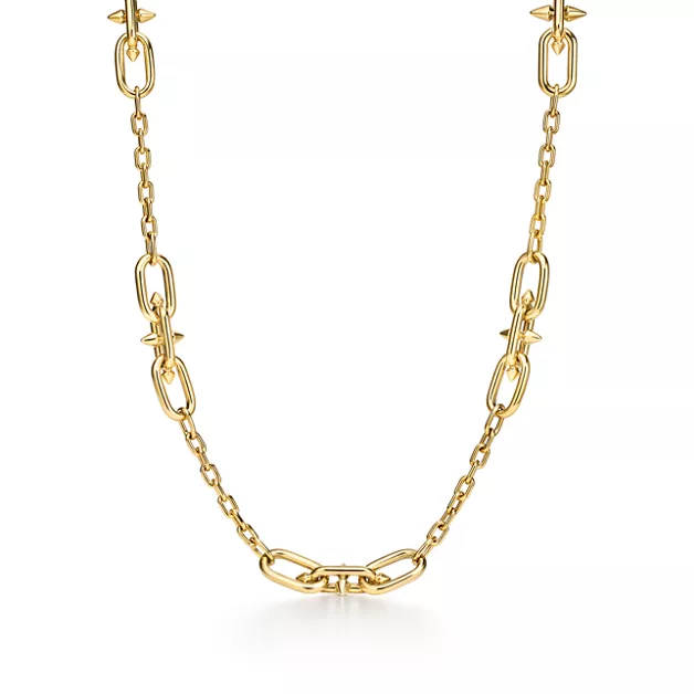 Mit Tiffany Titan by Pharrell Williams – einer Kollektion, die Rebellion als Katalysator für Kreativität zeigt – knüpft das Haus an seine Tradition der Zusammenarbeit mit visionären Künstlern an. Diese Designs sind inspiriert von Poseidon und seinem Dreizack. Ein eckiges, speerförmiges Motiv und weich konturierte Glieder sind für einen atemberaubenden Look in 18 Karat Gold gefertigt.