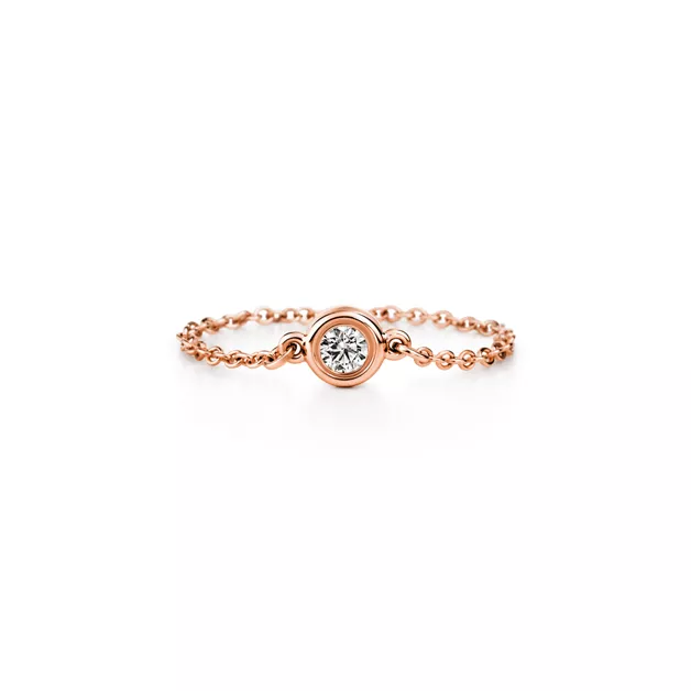 Die runden Tiffany-Diamanten fangen das Licht ein und bringen es zum Tanzen. Ring in 18 Karat Roségold mit einem Diamanten im runden Brillantschliff. Karatgewicht 0,07. Copyright der Originaldesigns bei Elsa Peretti.