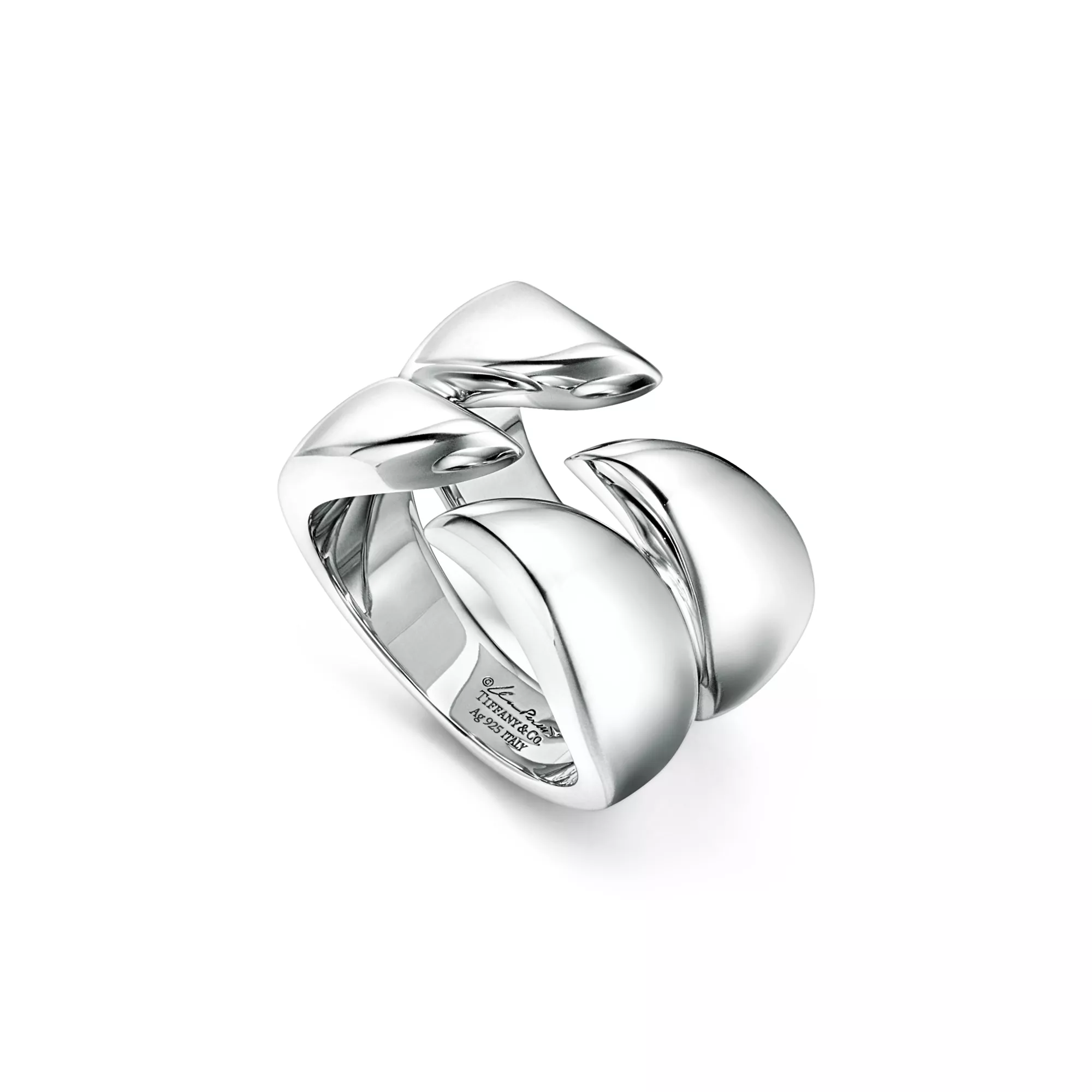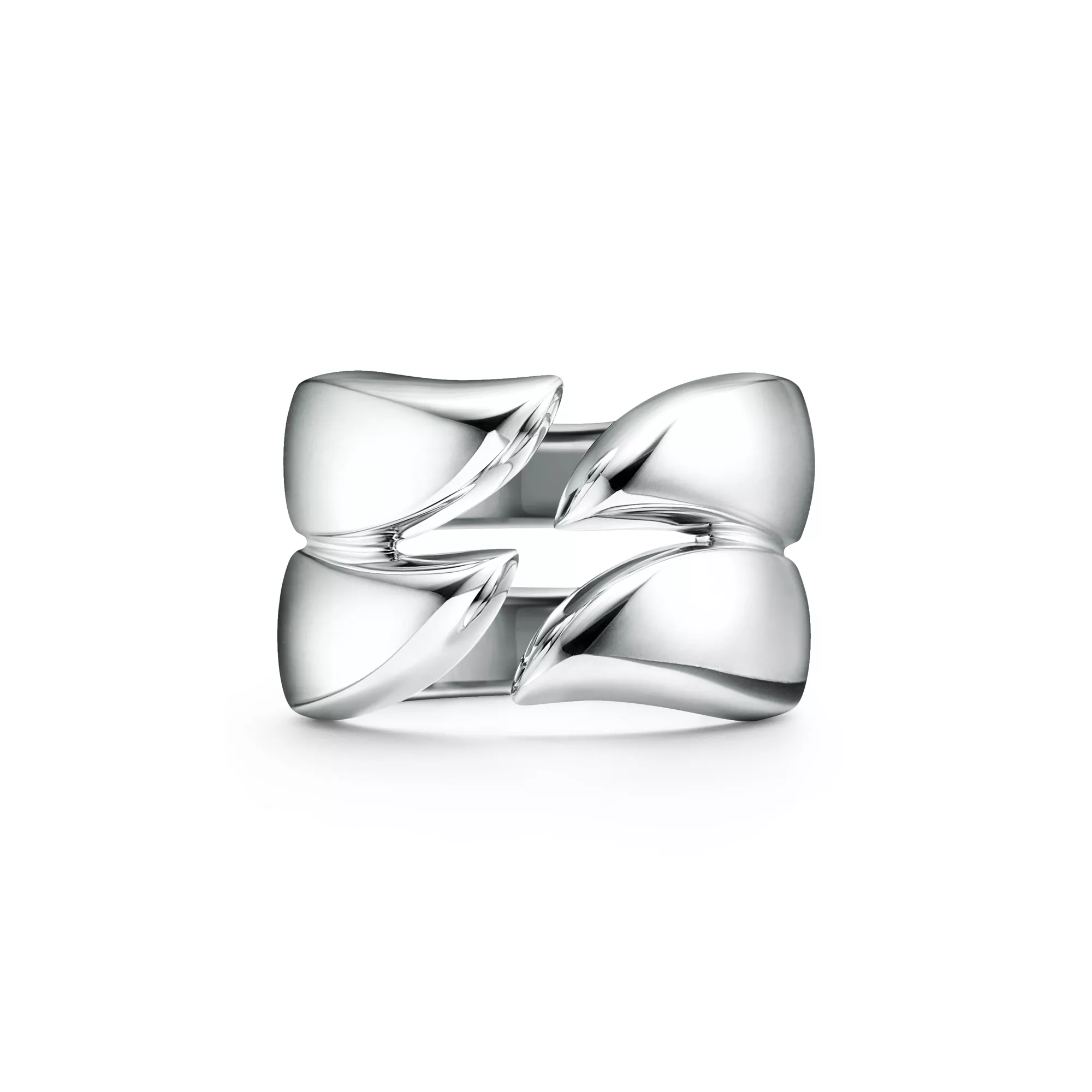 Elsa Perettis Federdesign ist eine abstrakte Interpretation einer Feder, die zum Anfassen einlädt. Die skulpturale, organische Oberfläche dieses Rings spiegelt Perettis charakteristisches Talent wider, Objekte von unwiderstehlicher Haptik zu schaffen, die uns an die Schönheit der Natur erinnern. Setzen Sie ein markantes Statement, indem Sie diesen Doppelring im Federdesign in Sterlingsilber mit einem Cuff im Federdesign in 18 Karat Gelbgold kombinieren, oder tragen Sie ihn einzeln für einen auffälligen Look.