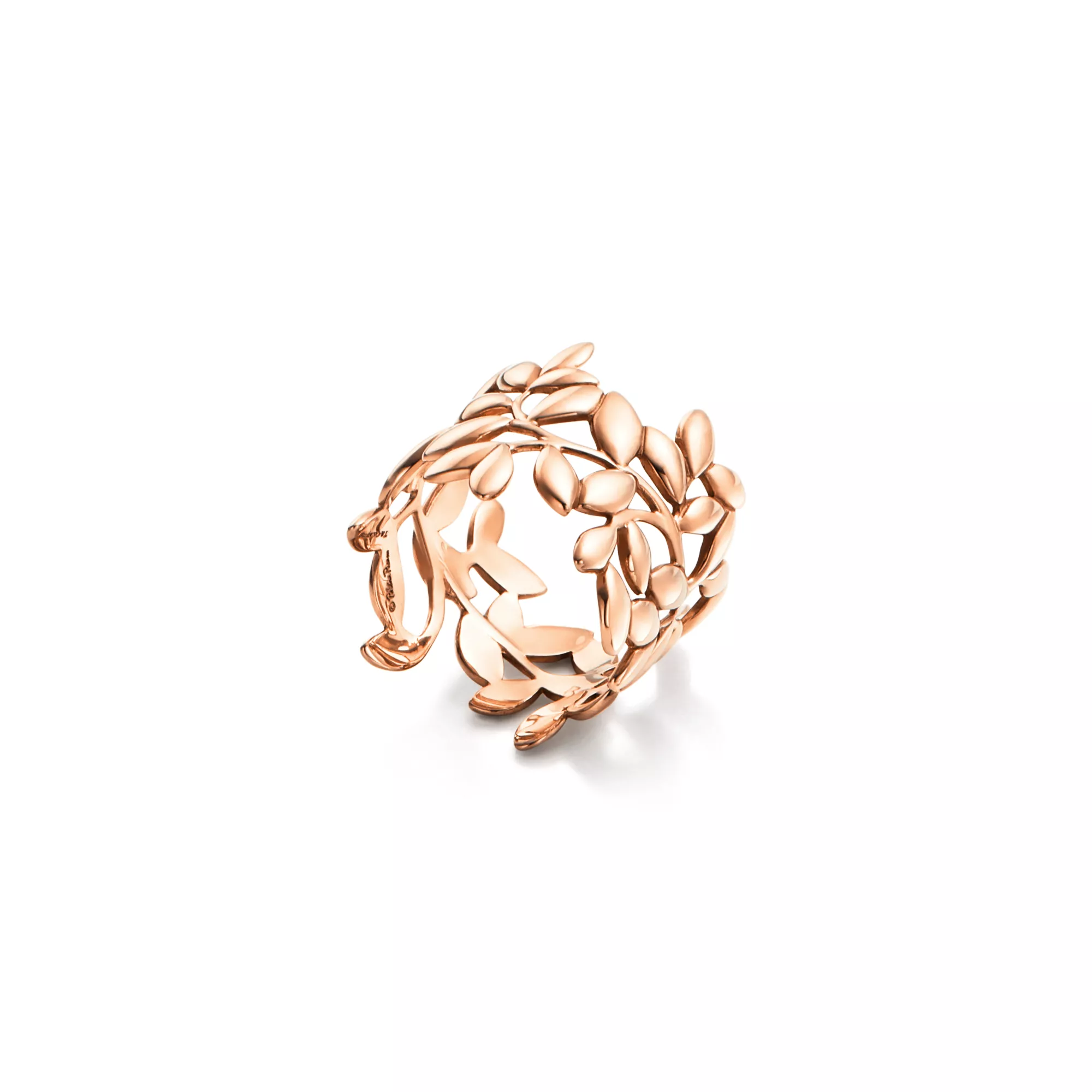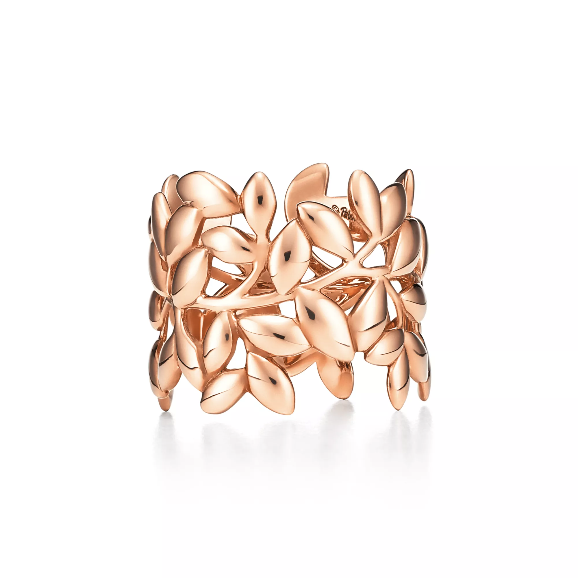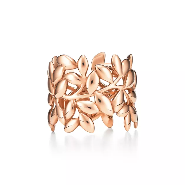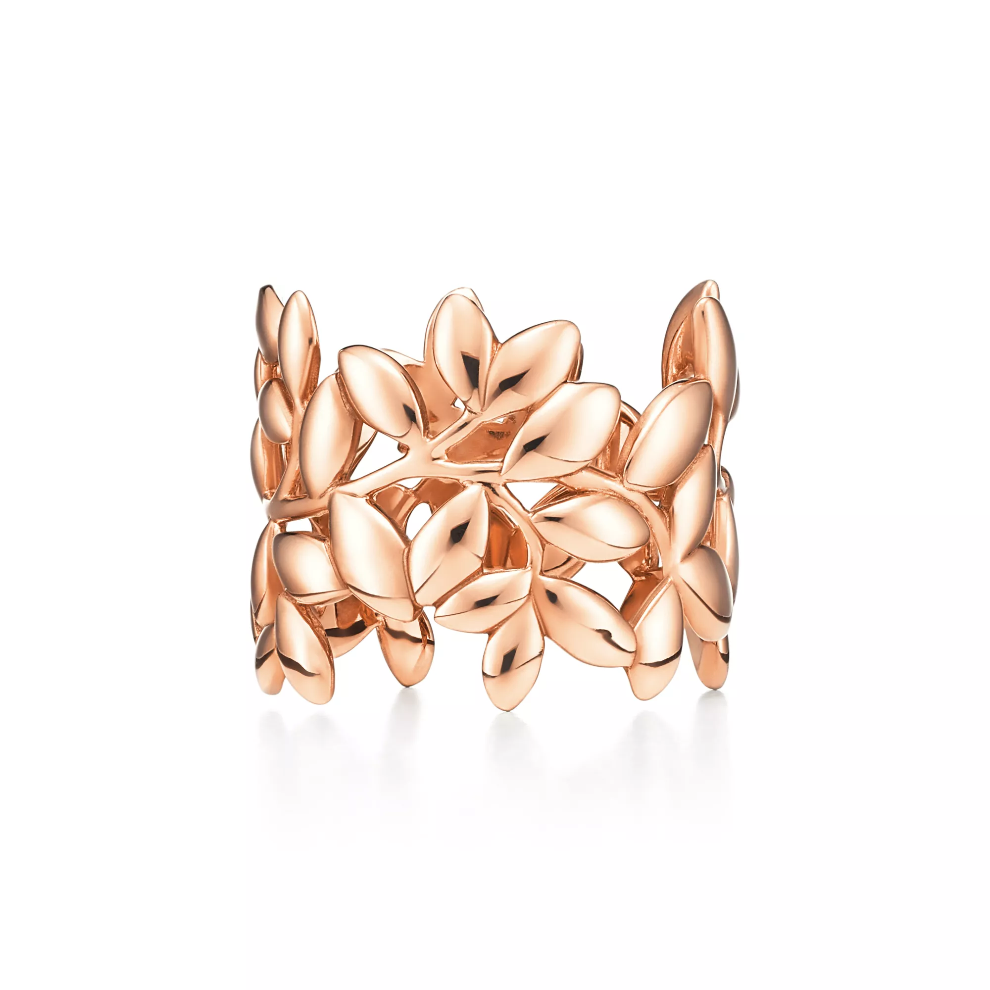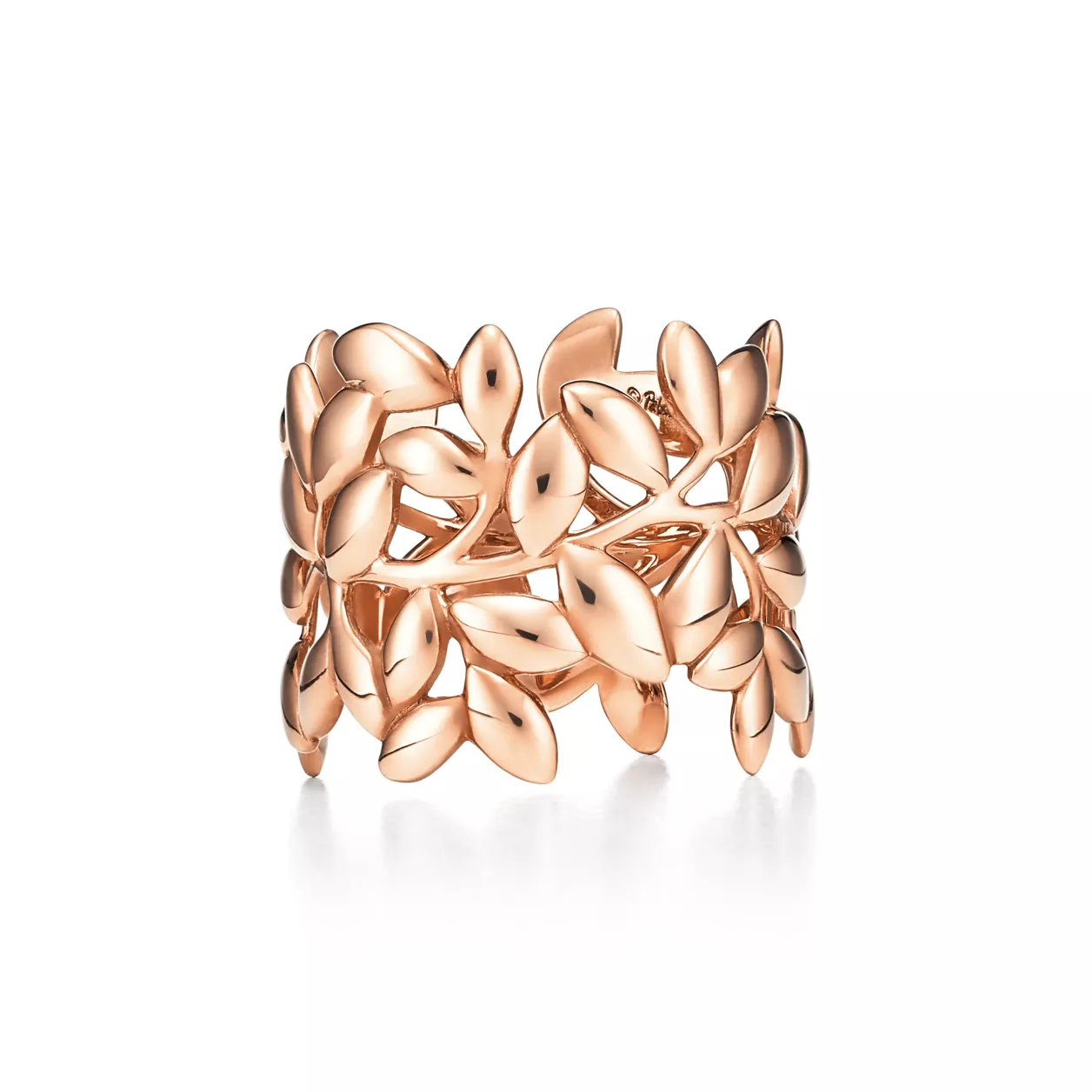 Mit schön geformten Blättern aus 18 Karat Roségold ehrt Paloma den Ölzweig als Symbol für Frieden und Fülle Wohlstand. Bandring aus 18 Karat Roségold. Copyright der Originaldesigns by Paloma Picasso.