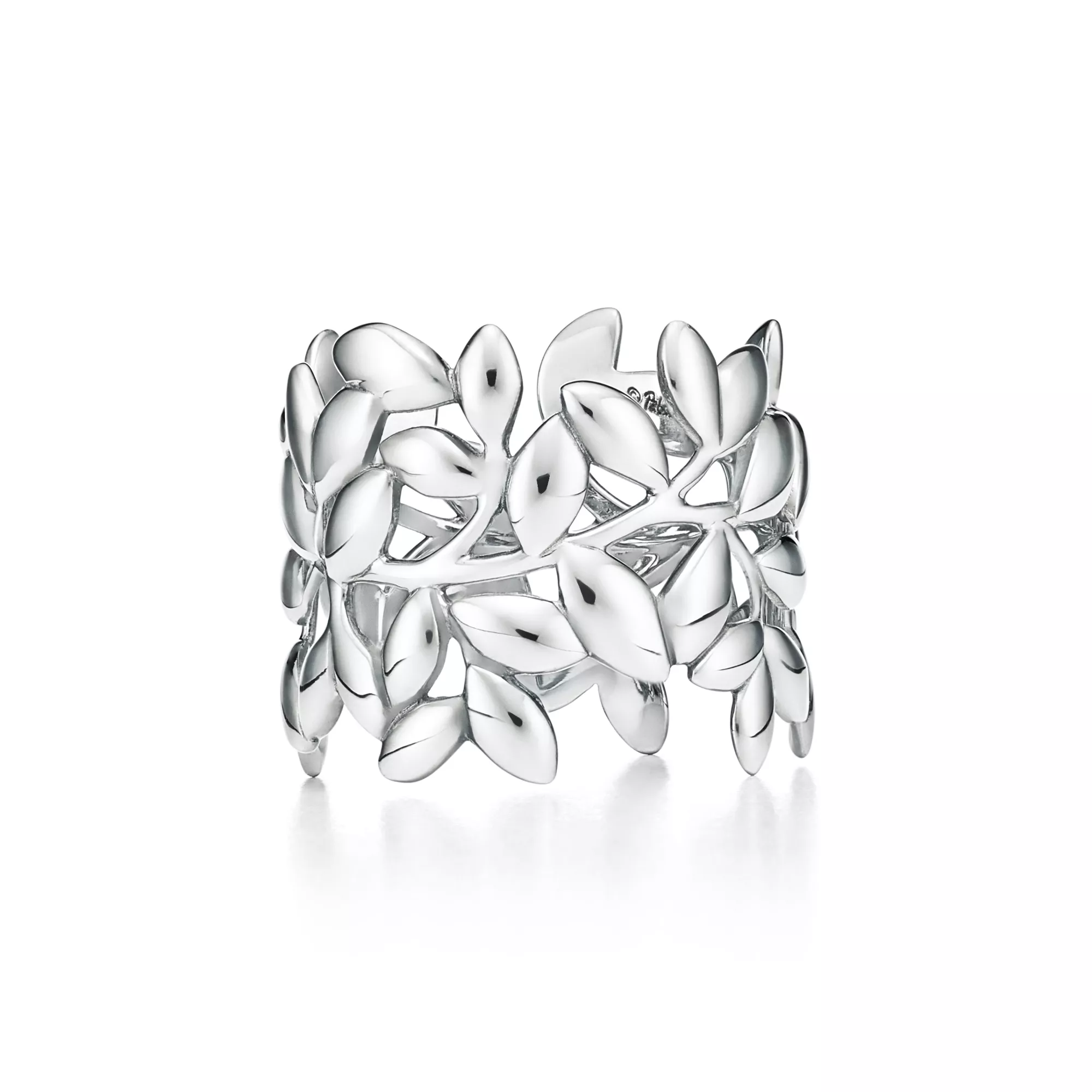 Mit schön geformten Blättern aus Sterlingsilber ehrt Paloma den Ölzweig als Symbol für Frieden und Wohlstand. Bandring aus Sterlingsilber. Copyright der Originaldesigns by Paloma Picasso.