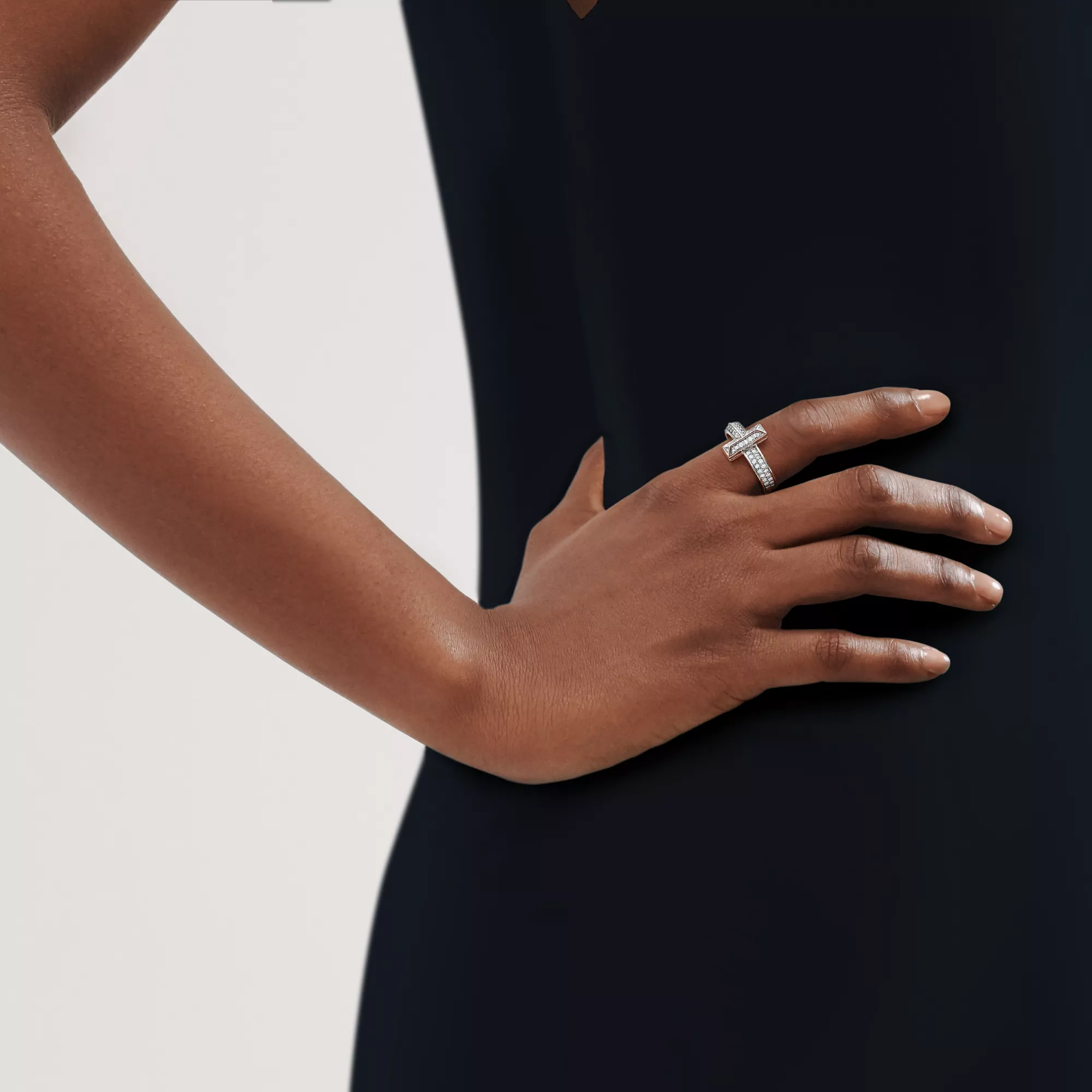 Tiffany T ist ein Symbol des unendlichen Potenzials der Liebe. Tiffany T ist inspiriert von einem Archiv-Armband aus dem Jahr 1975. Die Kollektion ist eine Hommage an das ikonische Motiv des Hauses und den Geist von New York, das Charles Lewis Tiffany als Ort der Verheißung und der Möglichkeiten betrachtete. Pavé-Diamanten lassen diesen breiten Ring erstrahlen und verleihen dem Stück einen atemberaubenden Glanz. Kombinieren Sie diesen Ring mit anderen Kreationen von Tiffany in 18 Karat Weißgold oder mischen Sie die Metalle für einen auffälligen Look.