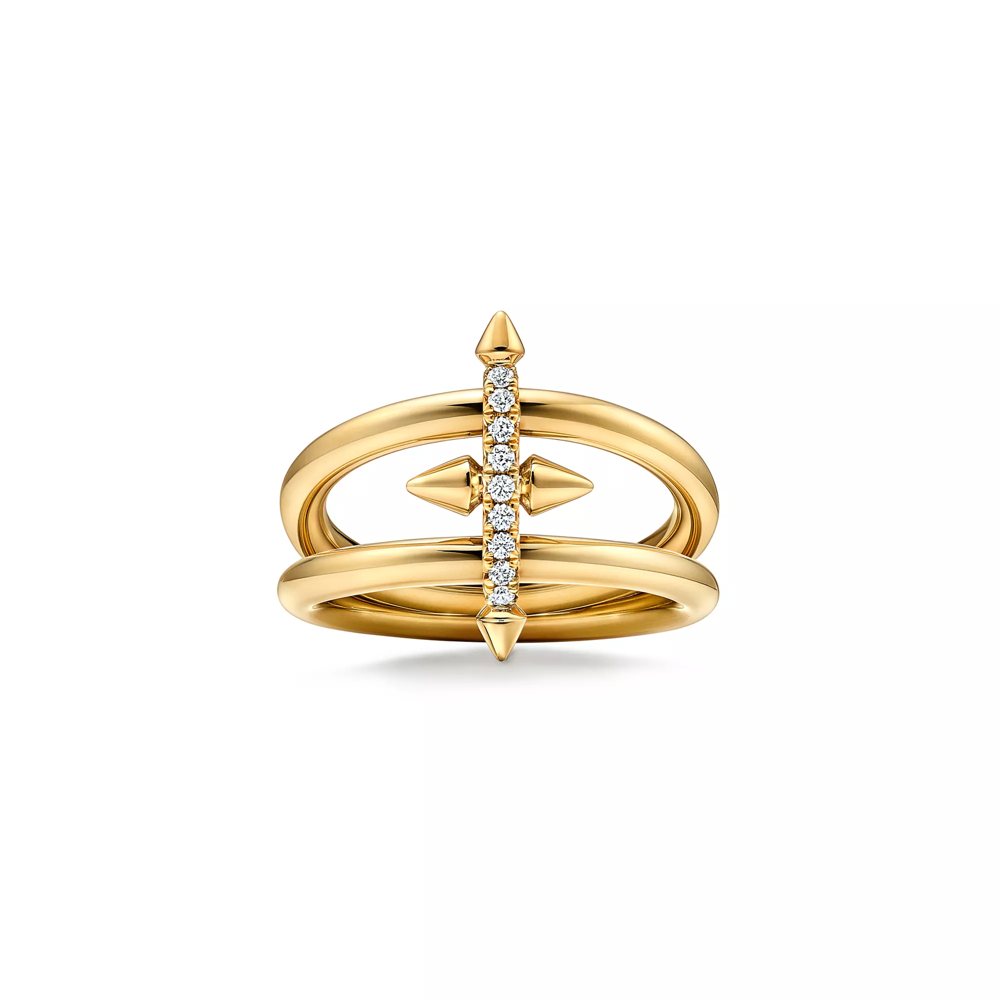 - Tiffany Titan by Pharrell Williams:Zweireihiger Ring in Gelbgold mit Diamanten